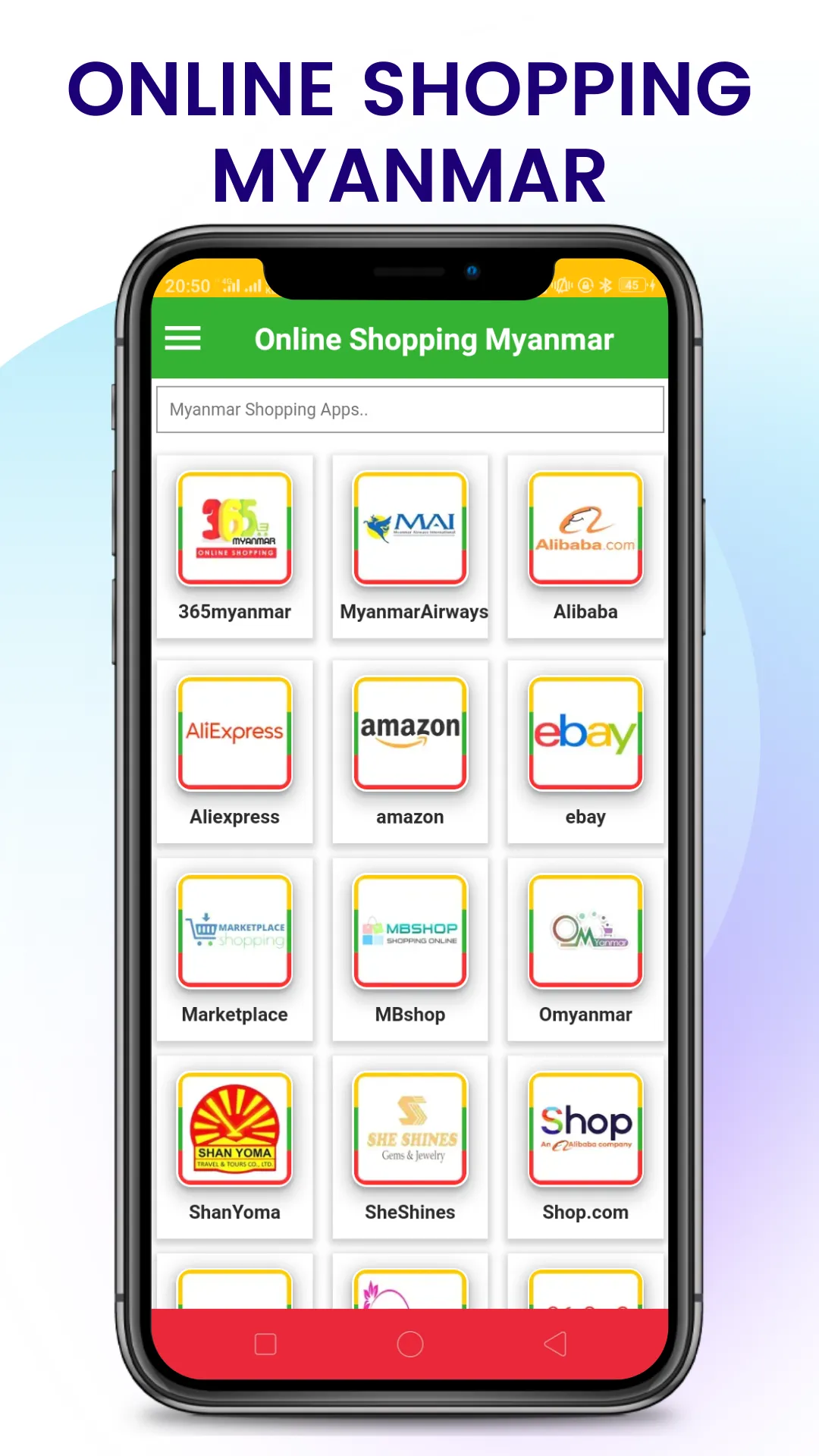 Myanmar Online Shopping - Online Shopping Myanmar offers access to top online Best Shopping Sites like as ict.com, 365myanmar, Shan Yoma, ShweShopping, Amazon, Shop.com and more. Online Shopping Myanmar - Myanmar Shopping App, Save Your Phone Memory It's simple to get all of your favourite shopping websites. Myanmar Shopping - Online Shopping in Myanmar:- Only on Myanmar's Online Shopping - Myanmar Shopping App can you find the best deals and discounts. Top Features Have Been Included in Myanmar's Online Shopping App Get Discounts on Every Purchase....