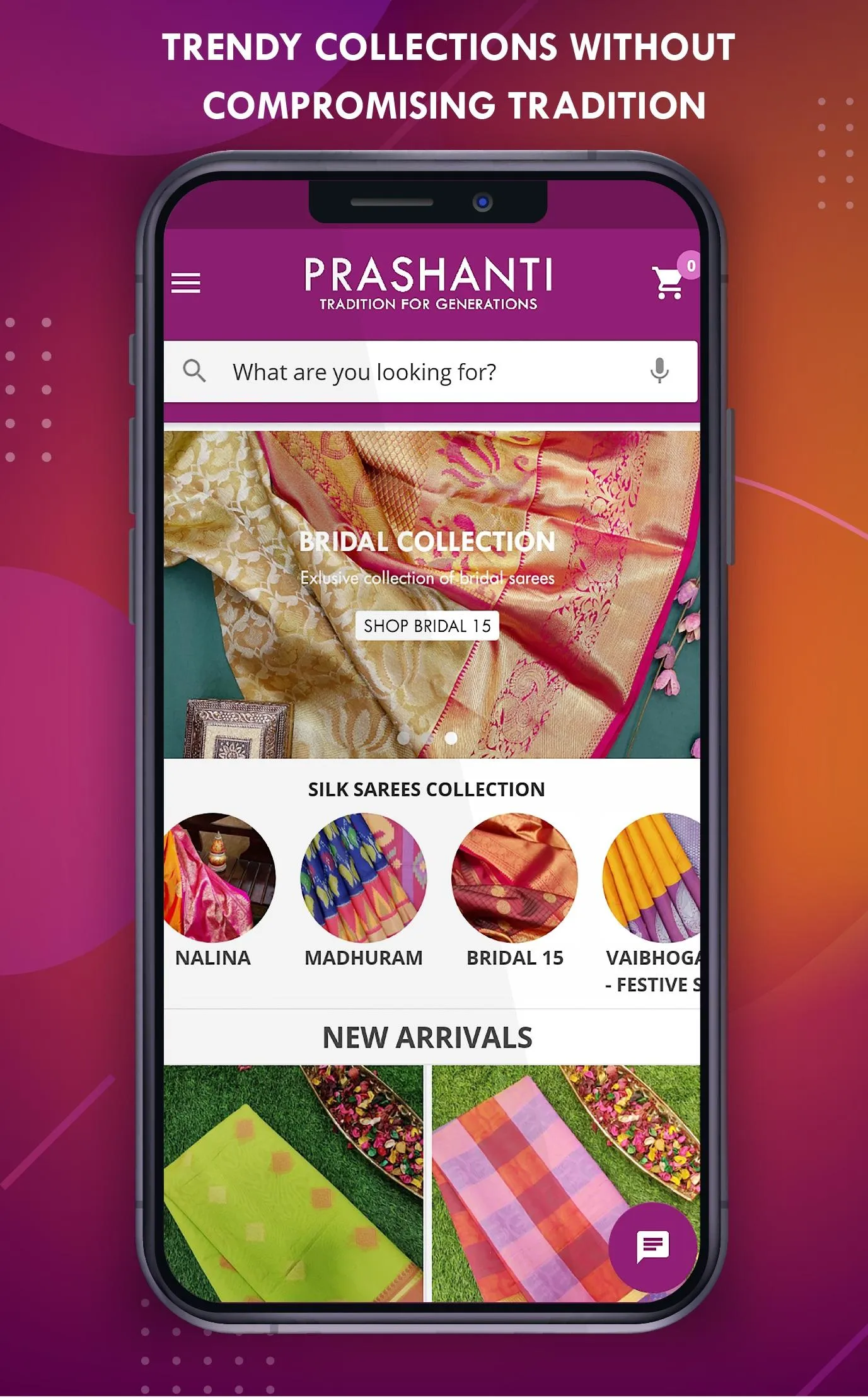 Prashanti Sarees is an eminent name among saree connoisseurs and has always made the lovely women glorious with flamboyant weaves in handloom sarees. We have the most trending collections in Kanjivaram Pure Silk sarees, Silk cottons, Linen sarees & much more without compromising tradition. Now shop your favorite saree from our signature silk sarees collection - The Nalina, Madhuram, Vaibhogam & Bridal 15. ...
