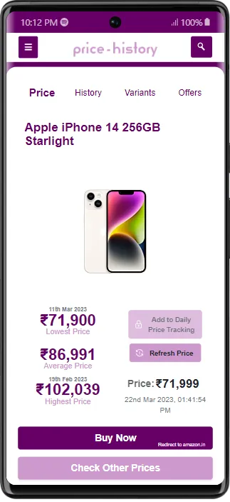 Price History: Price tracker for Online Shopping Price History is most advance price tracking tools that track price of product on e-commerce stores & Helps you compare price fluctuations over period of time with interactive charts. Price History Helps you to check Product's historic price movements & Offers. Price History is the Most Advance Amazon Price Tracker in India. ...