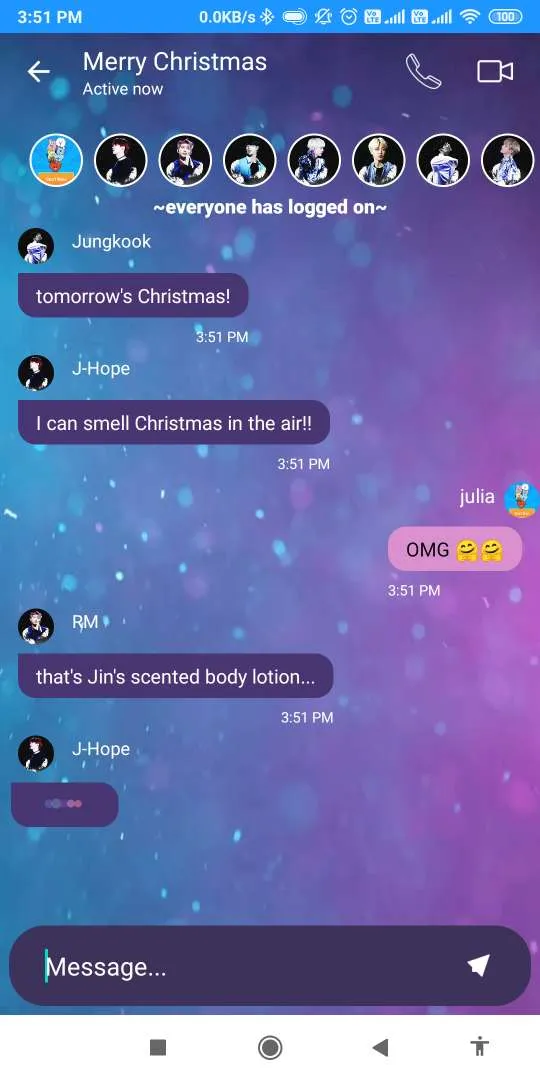 🌌 We are very excited to announce a great ChatRoomSimulator. In which you get amazing rewards to be into chatRooms . 🌌 We are providing private chat options also to talk with your favourite BTS idos and send them to friends. 🌌 We are here giving you a chance to talk and videocall with your favourite BTS Chat Idols You can schedule a BTS fake call and see your handsome BTS Idols in BTS Video Call. You can also do private BTS chat and also get your favourite BTS call you and show your friends that you talk with BTS idols everyday. ...
