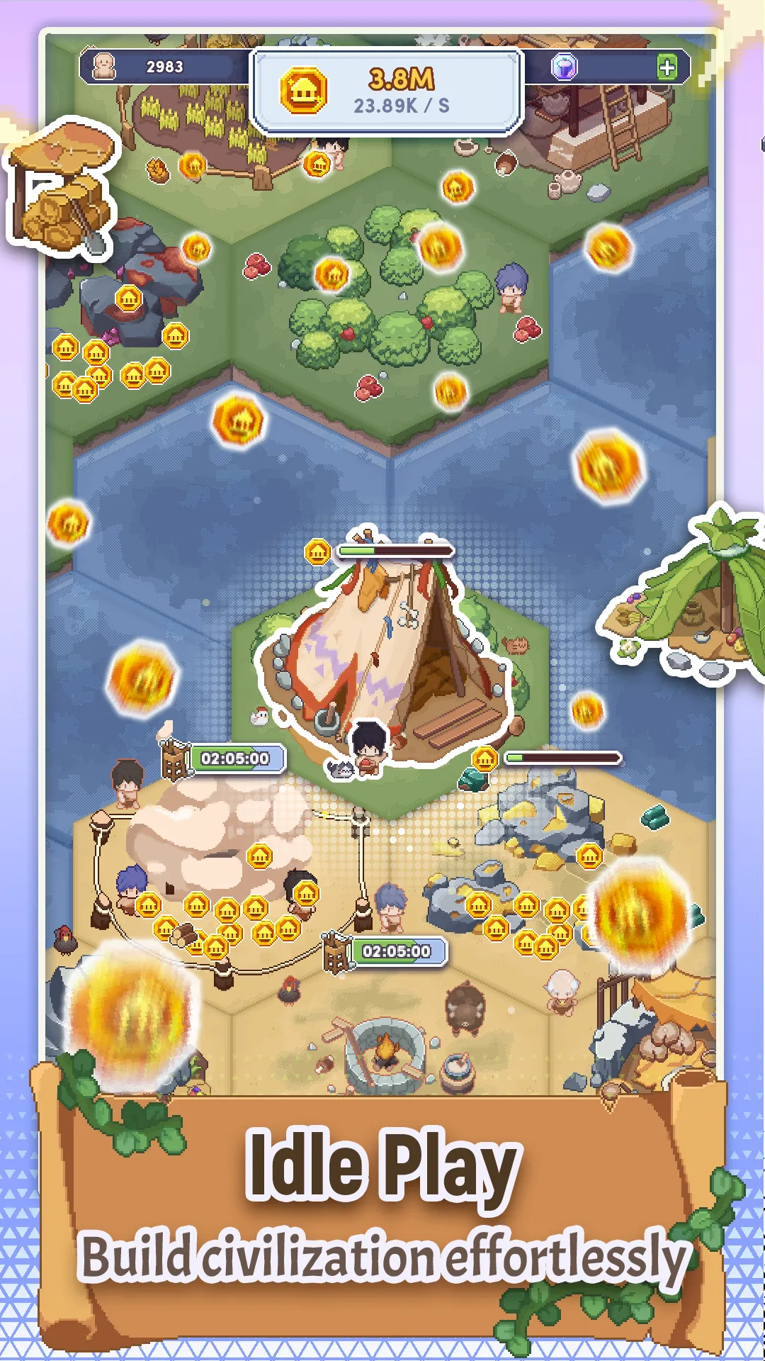 Welcome to 'Pixel Civilization', an idle casual simulation game that takes you on a grand adventure through the epochs of human history! Immerse yourself in a peaceful world focused on growth, development, and innovation. Starting in the humble beginnings of the Stone Age, your task is to lead your civilization to greatness, advancing through time until you reach the glorious Space Era. With a rich variety of resources at your disposal, planning and wise management are key to unlocking the full potential of your society. 🏠 Construct and Upgrade: Build a variety of structures from homes, farms, schools, to research facilities. Each building plays a crucial role in the development of your civilization, providing essential resources, boosting your economy, and unlocking new technological advancements. ...