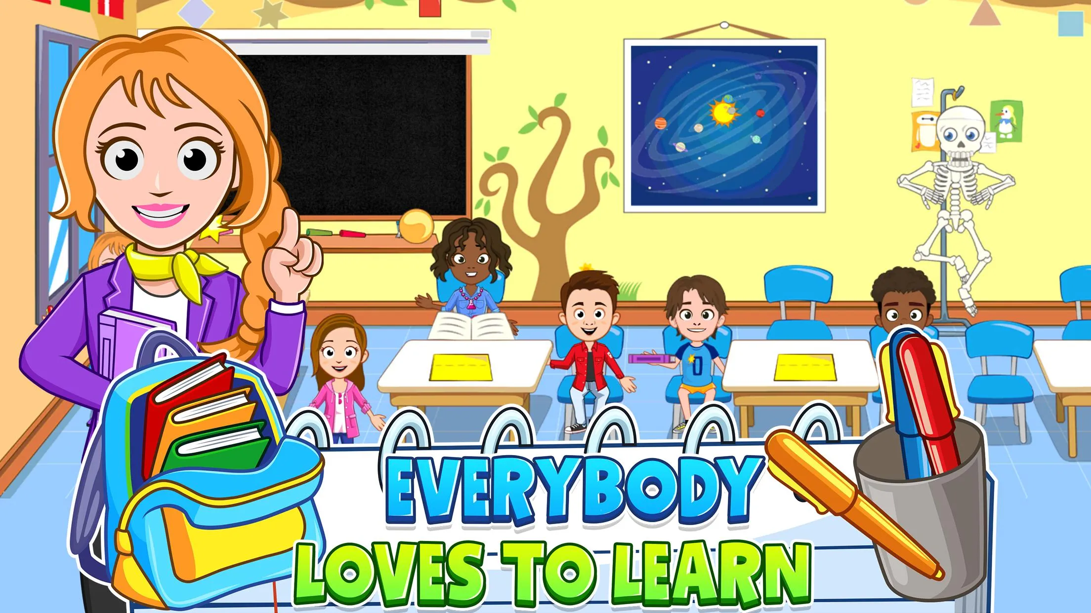 School games for kids to play and learn. Enjoy fun school days! Back to school, kids! Go to school, grab your backpacks, enter a school bus and do not be late for a class. Play fun school games, attend chemistry class, music class, astronomy class and meet your classroom friends. Play as a teacher, student, parents and more! My Town School games for kids is an amazing role-playing game for the entire family. Fun school days are here! Simulate a school life and create your stories! Go to a school where you can learn and have fun! ...