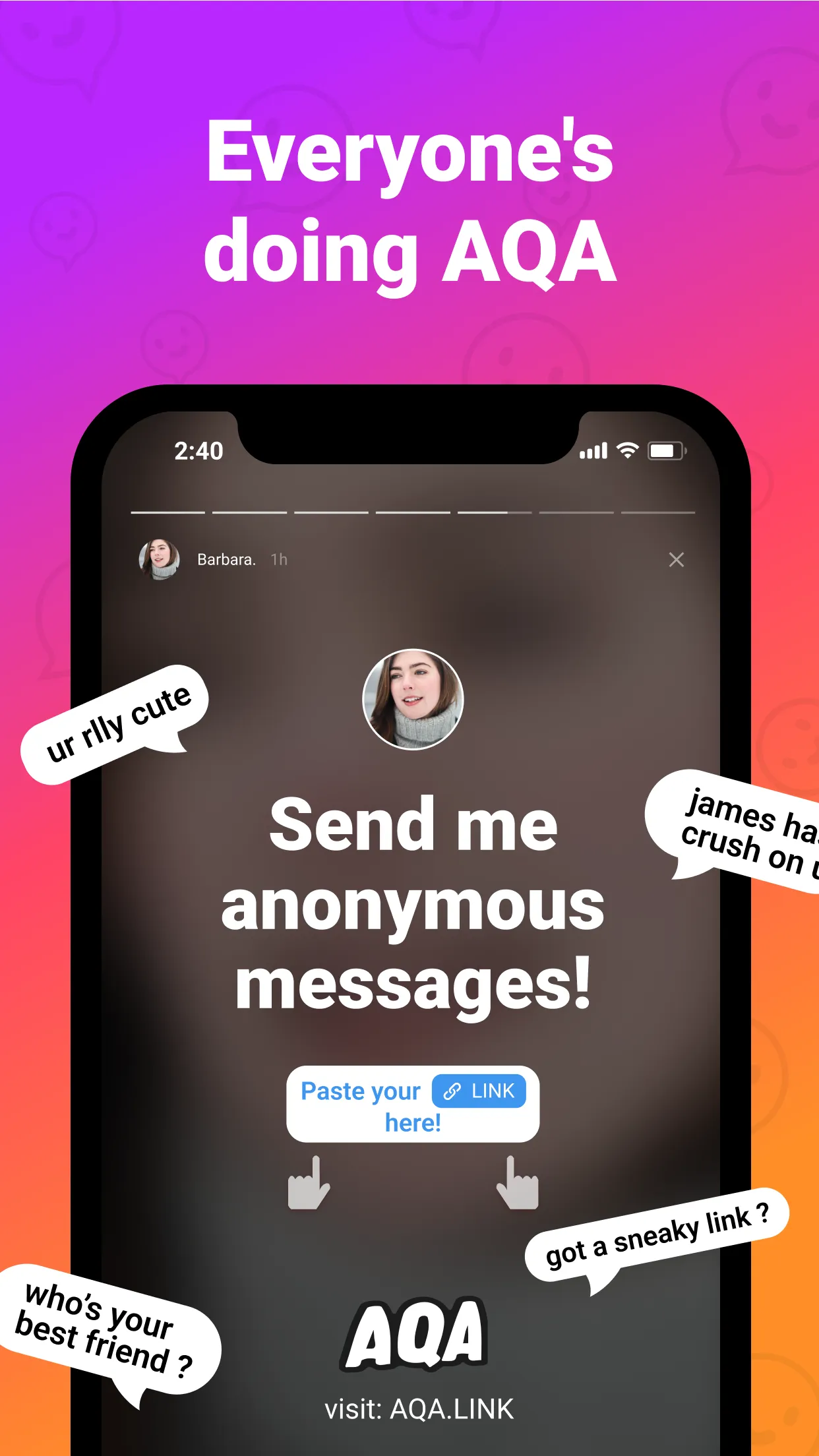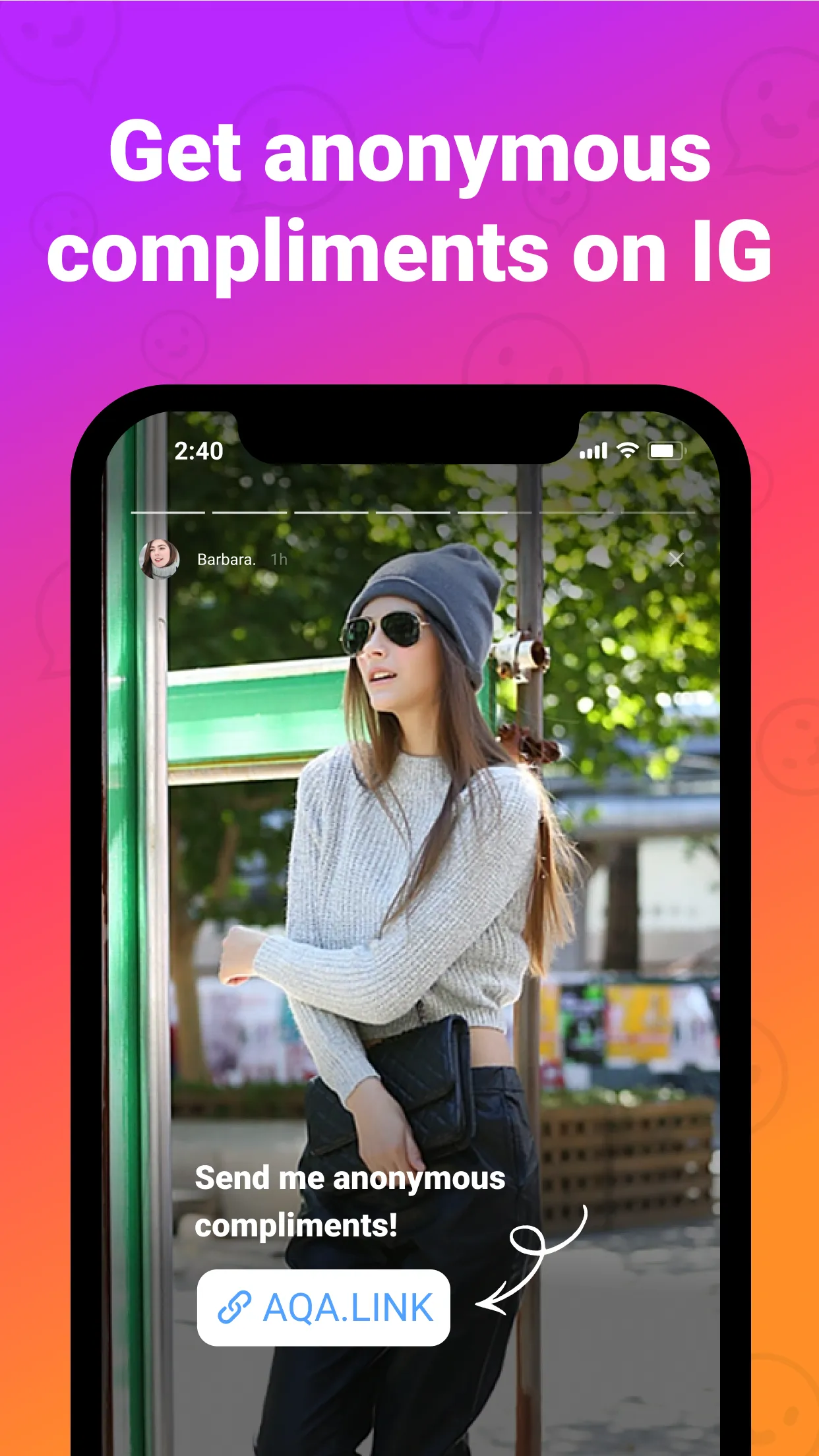 1. Share your aqa.link 2. Friends answer right on your story 3. Get responses on AQA To get even more messages, add your aqa.link to your IG Bio!