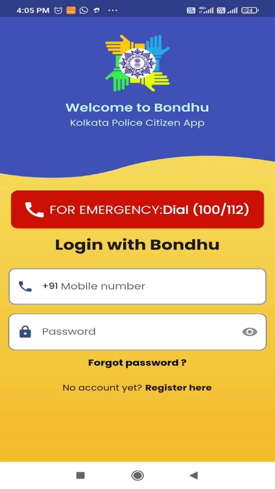 ‘Bondhu’ Kolkata Police Citizen App with improved feature and user interface will now facilitate Citizens of Kolkata in many ways :- • the ‘panic’ button is your ‘Bondhu’ in any kind of emergency. Pressing this will trigger a call to the 100 dial helpline of Kolkata Police. It also sends your present location details to two emergency contacts you have chosen to enter in the app. Be it a medical emergency for the elderly people or a case of ladies facing harassment on the streets or any other unforeseen crisis, press the ‘panic’ button for help. • Check details of all pending traffic violation cases. • Check the status of your lost mobile phone. • Online access to FIR and downloading option. • Online registration of ‘Pronam’ for senior citizens....