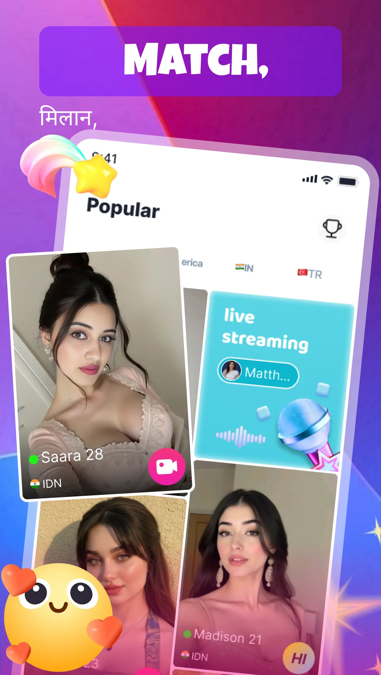 Looking for that special someone to call your boo? BooCam is the fun and friendly place to meet and connect with incredible people through live video chat. Let the sparks fly and discover connections that make you smile. Here's how to find your boo: 👻 Fun Video Chats Hop on a spontaneous video call and see the chemistry for yourself. Our clear and stable video makes it easy to laugh and talk for hours with someone special, face-to-face. ❤️ Discover Awesome People Browse through profiles of fasc...