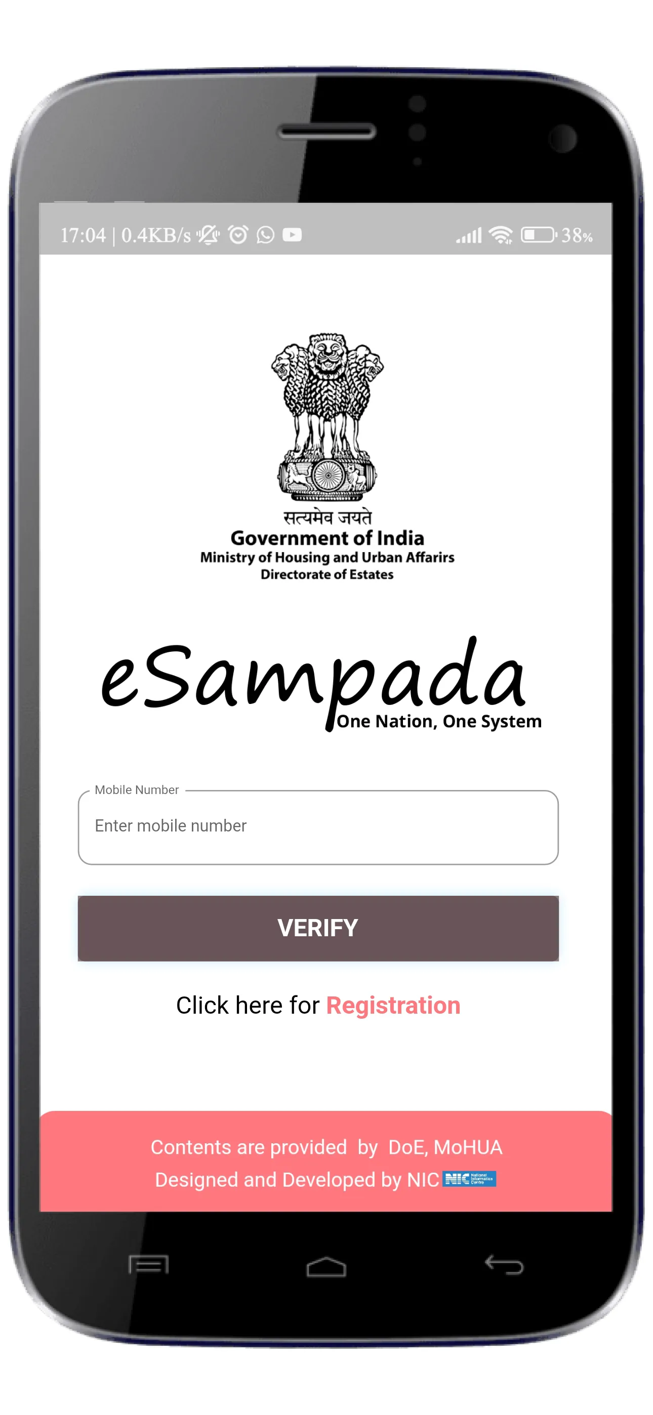 eSampada Mobile App features all the services provided by eSampada web portal viz., i. Allotment of Residential Accommodation ii. Holiday Homes Bookings iii. Venue Bookings Now all the services can be availed on the go & at your fingertips from your smartphone. eSampada Mobile App brings the whole new experience of new registration, applying and bidding for a Government Accommodation, No Demand Certificate, Clearance Certificate, Acceptance, Retention, Regularisation, Online payment from your Smartphones....