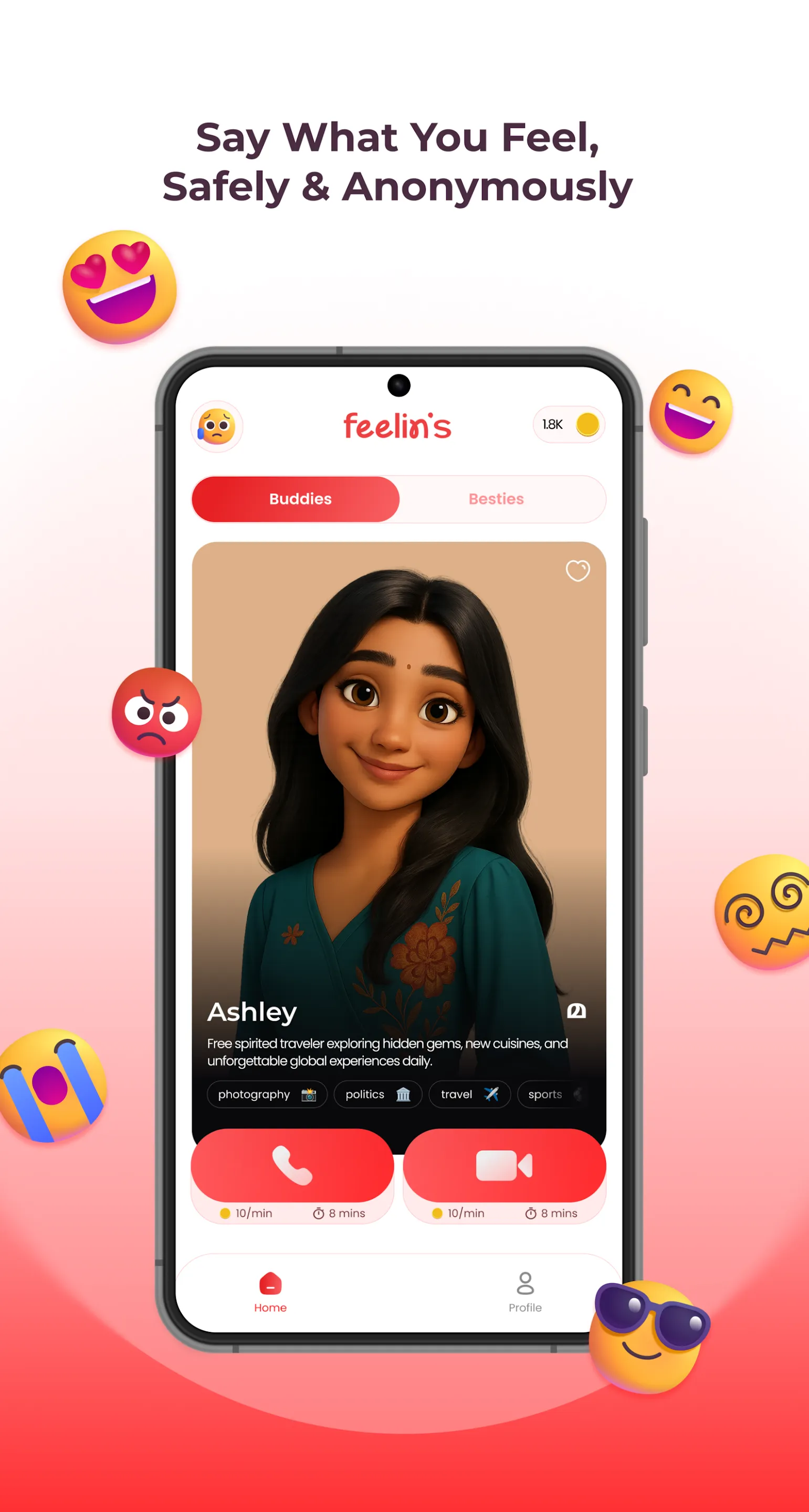 Feelin's – Real Friends, Real Feelings, Real Connections 💖 In today's whirlwind world, sometimes all we crave is a listening ear—a true friend who understands us without judgment or small talk. That's exactly why Feelin's exists. ✨ Feelin's is your go-to real-time calling and friendship app, built to foster genuine connections with people across India. Whether you're feeling chatty, curious, lonely, or just want to share your feelings and vibe with a friend, you'll always find someone ready for a warm, heartfelt conversation and the start of lasting friendships. 🗣️ ...