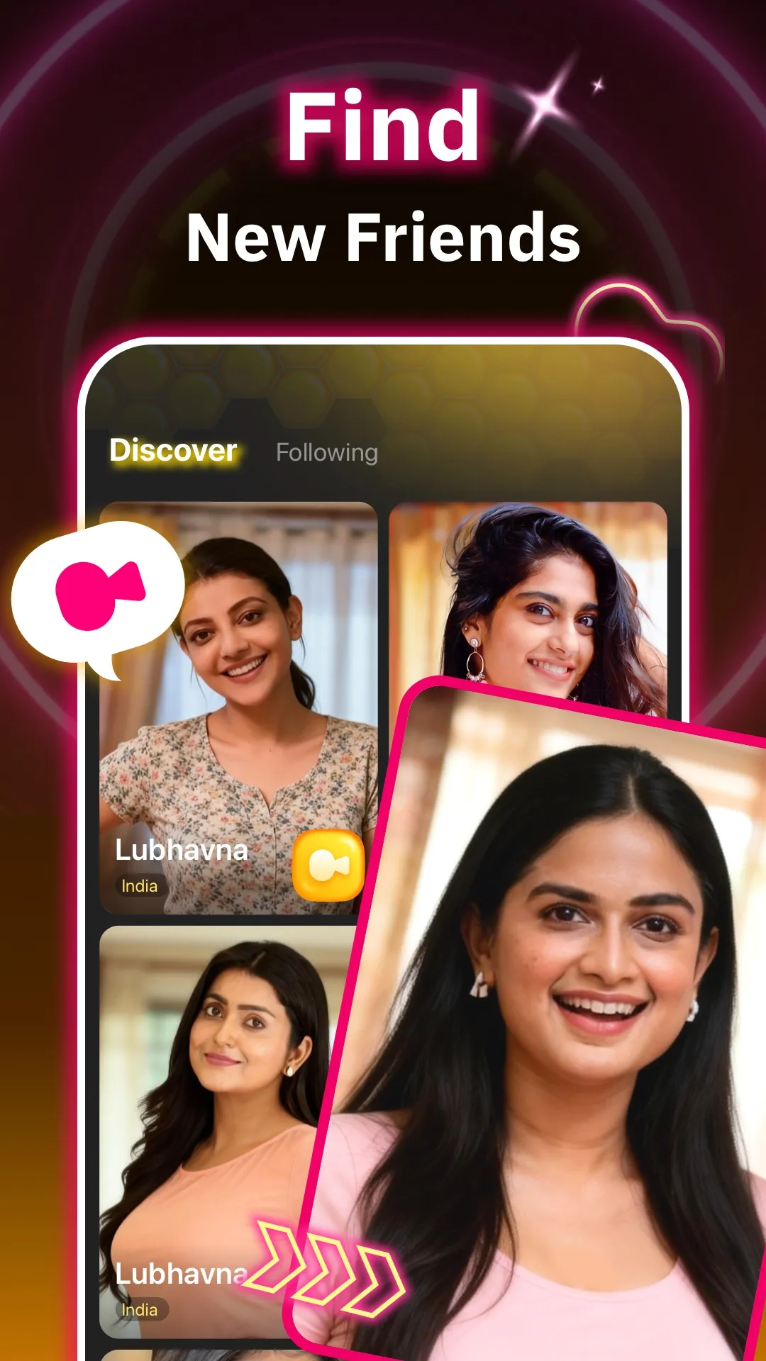 Welcome to Lubhavna: Connect by video call Anytime! At Lubhavna, we offer a fresh way to connect through live video chats. Whether you're looking to make new friends or simply share your thoughts, this platform is your space to express yourself and form real connections. π Find someone with your vibe Connect with people who share your interests and energy. You can laugh, chat, and form lasting friendships that go beyond just small talk. ...