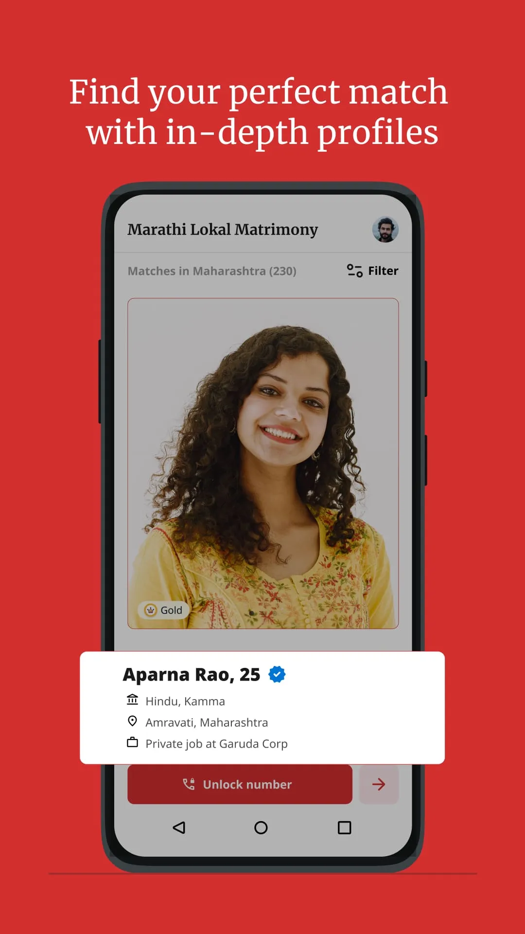 Welcome to Marathi Lokal Matrimony, your ultimate destination for finding the perfect life partner in Maharashtra. Our app is designed to cater to the unique matrimonial needs of individuals in Maharashtra, helping you find a spouse who shares your cultural and community values without the need to relocate. Whether you belong to any caste or religion, Marathi Lokal Matrimony ensures you find your ideal match within your district. Why Choose Marathi Lokal Matrimony? Local Matches: Connect with potential brides and grooms from Maharashtra, ensuring compatibility and cultural harmony. Our focus on local matches means you can find someone who understands your local traditions and values, making your marital journey smoother and more harmonious. Inclusive Platform: We welcome members from all castes and religions, promoting diversity and unity within our community. This inclusiveness helps you find someone who shares your values and beliefs, regardless of background. User-Friendly Interface: Our app is easy to use, with a simple interface that makes it effortless to create a profile, browse matches, and connect with potential partners. The intuitive design ensures a seamless experience for users of all ages. Advanced Search Filters: Customize your search based on criteria like caste, religion, education, profession, and more to find the perfect match. These advanced filters help you narrow your options to the most compatible candidates....