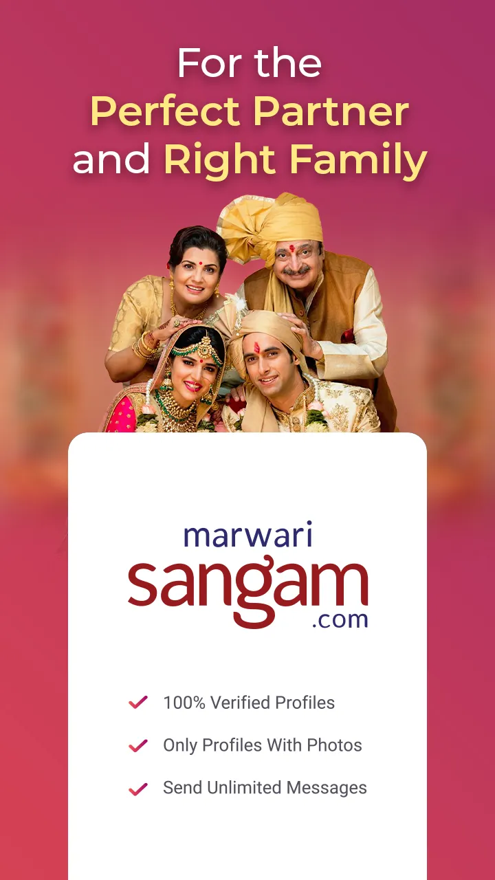 Trusted Marwari Matrimony app for Matchmaking Welcome to Marwari Sangam, one of the oldest family matchmaking services to find Marwari brides/grooms. Marriage in India is about families & communities - not just two individuals. Our app has been created from the ground up keeping this reality in mind. ...