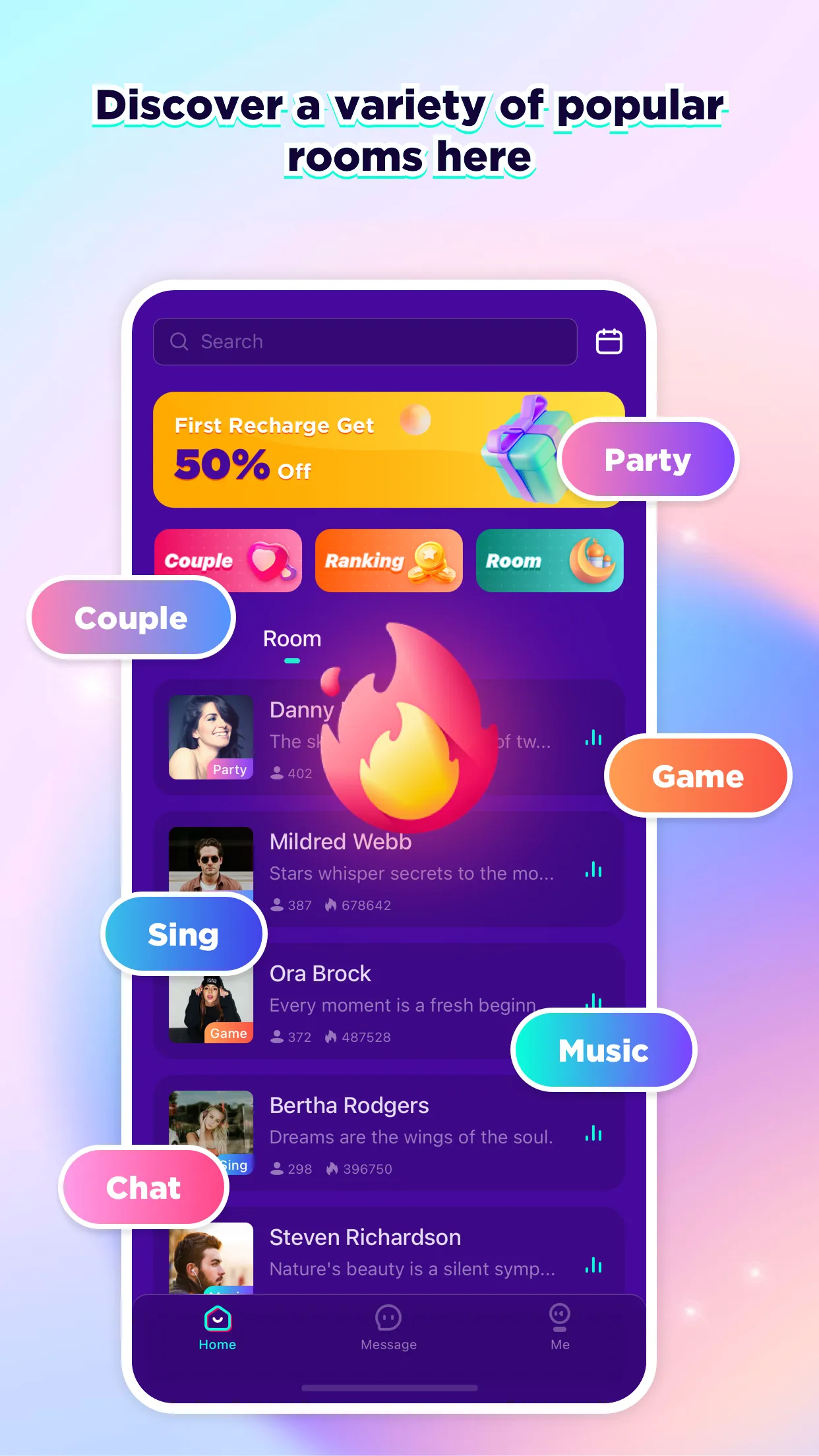 In Mimi, you can enjoy voice chat and fun games with people from different regions or countries. You can create your own room, chat and sing together with friends or strangers! Let's start the voice chatting party and find friends in the Mimi voice chat room! Main features: ...