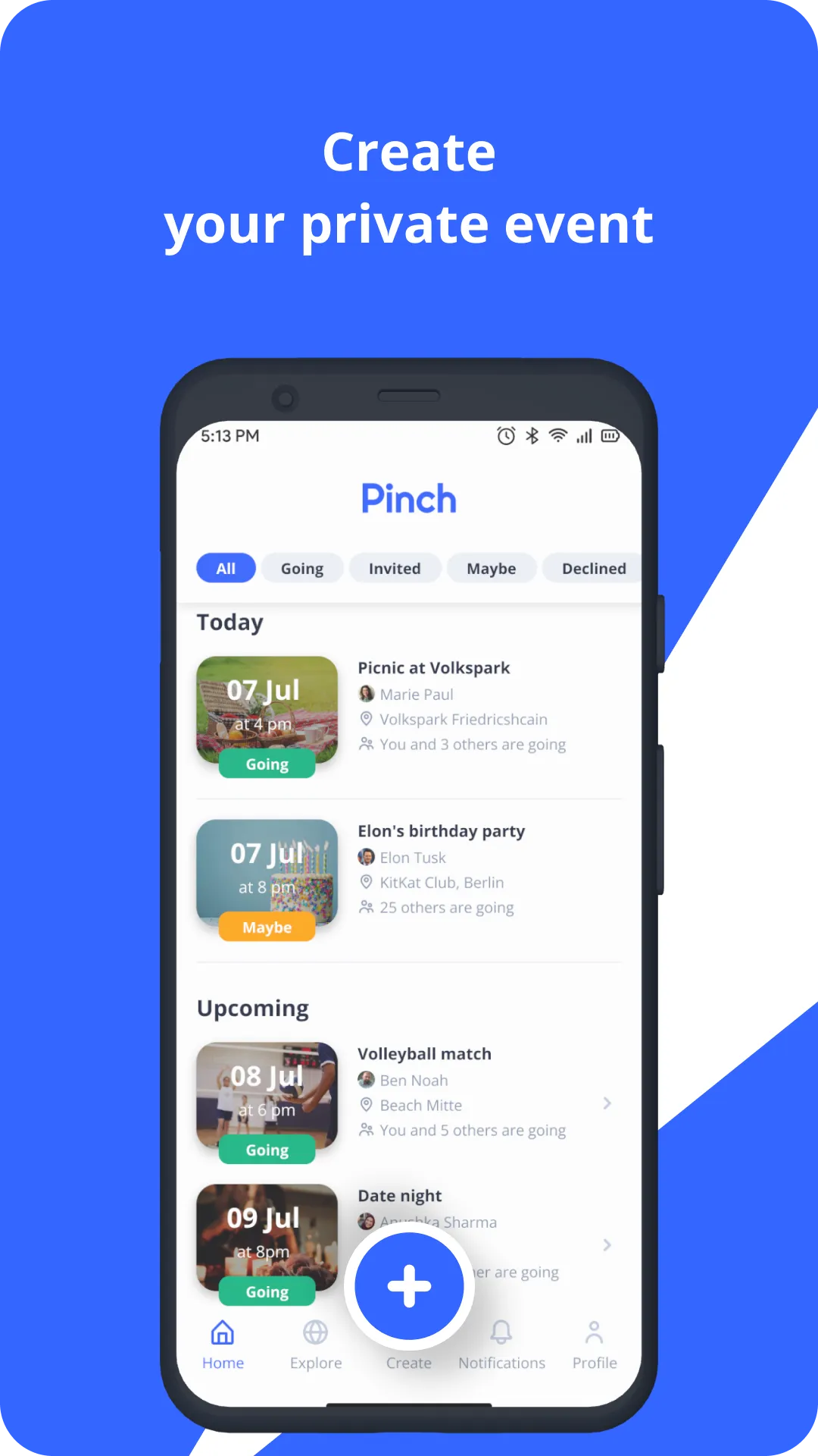 Pinch is an event planning platform that helps you plan and organize all types of events in a snap, from organizing dinner evenings to attending music festivals. Pinch gives you everything you need to organize an event successfully - Simple event creation - Polls to decide location & time - Event invitation - RSVP and notes...