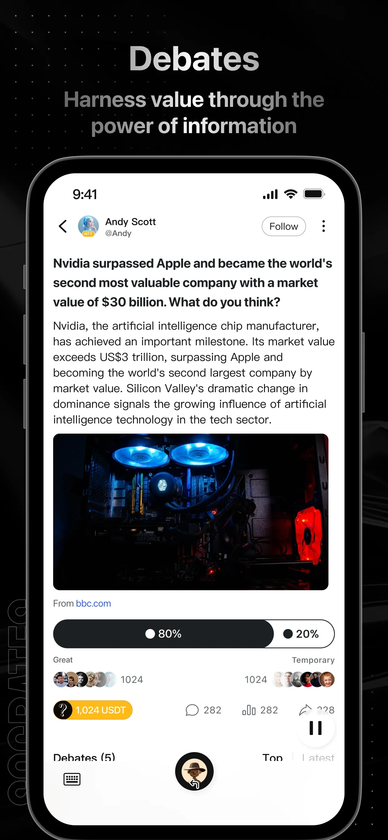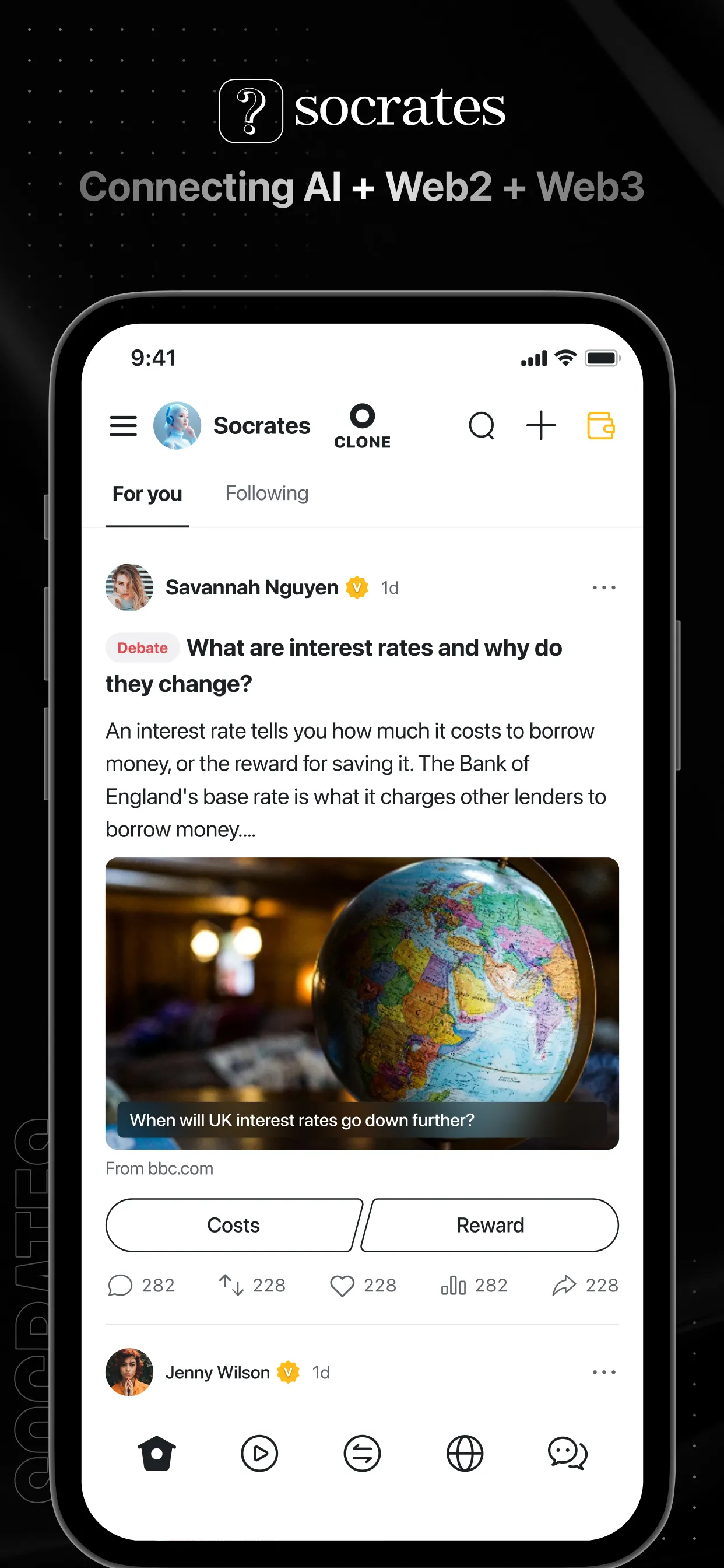 The function of the Socrates' Web2 product lies in inspiring individuals to engage in critical thinking on a range of issues. The product aims to counteract the biased and extreme viewpoints common in mainstream social media's approach to societal problems, and seeks to propel human society towards a more rational, inclusive, equal, and open direction. Furthermore, it harnesses collective wisdom to expand the boundaries of human thinking. Socrates' Web3 product is designed around the principle "All data is assetized, all data is privatized, all data is monetized." By directly connecting people, information, and value, it can monetise both human and informational value. It seeks to bridge the world of Web2 and Web3, ultimately pioneering the transformation of internet production relationships. Our functions & features (not exhaustive): 1. Homepage: mixed feeds support trending news, various fun topics, insightful debates, etc....
