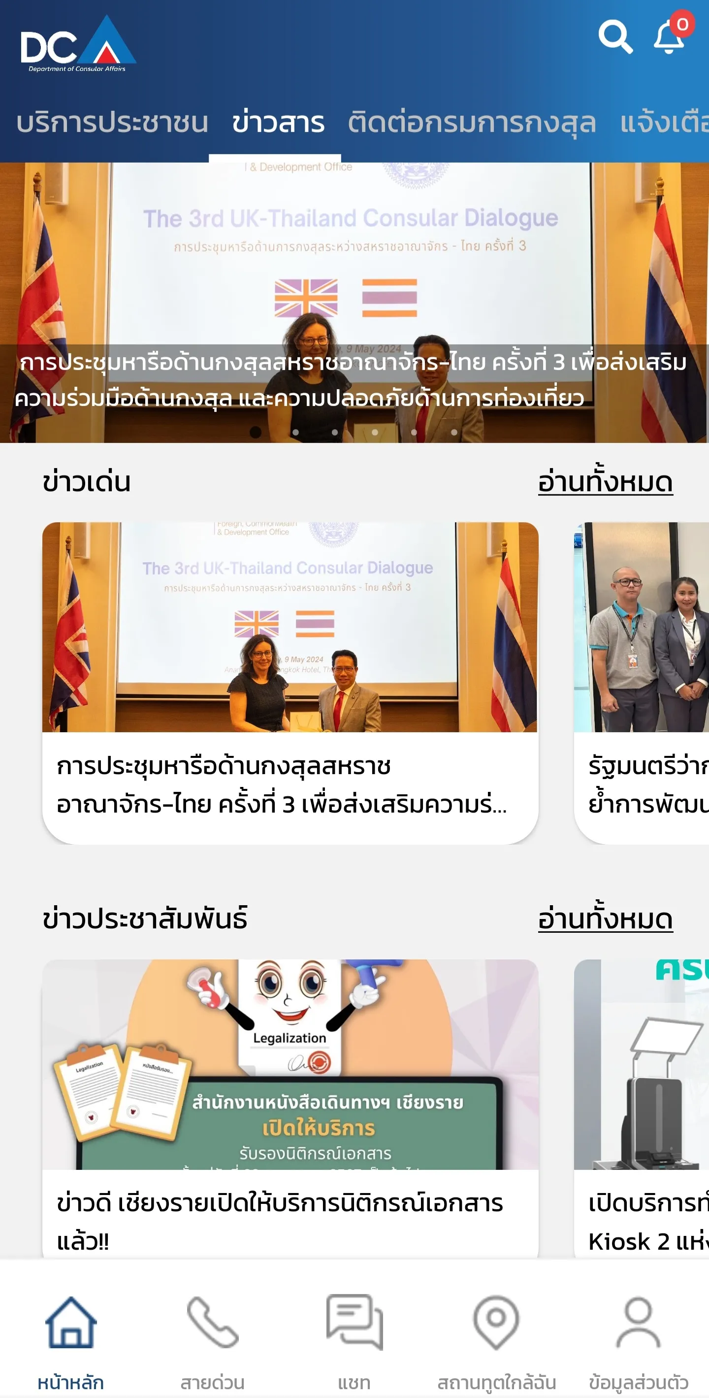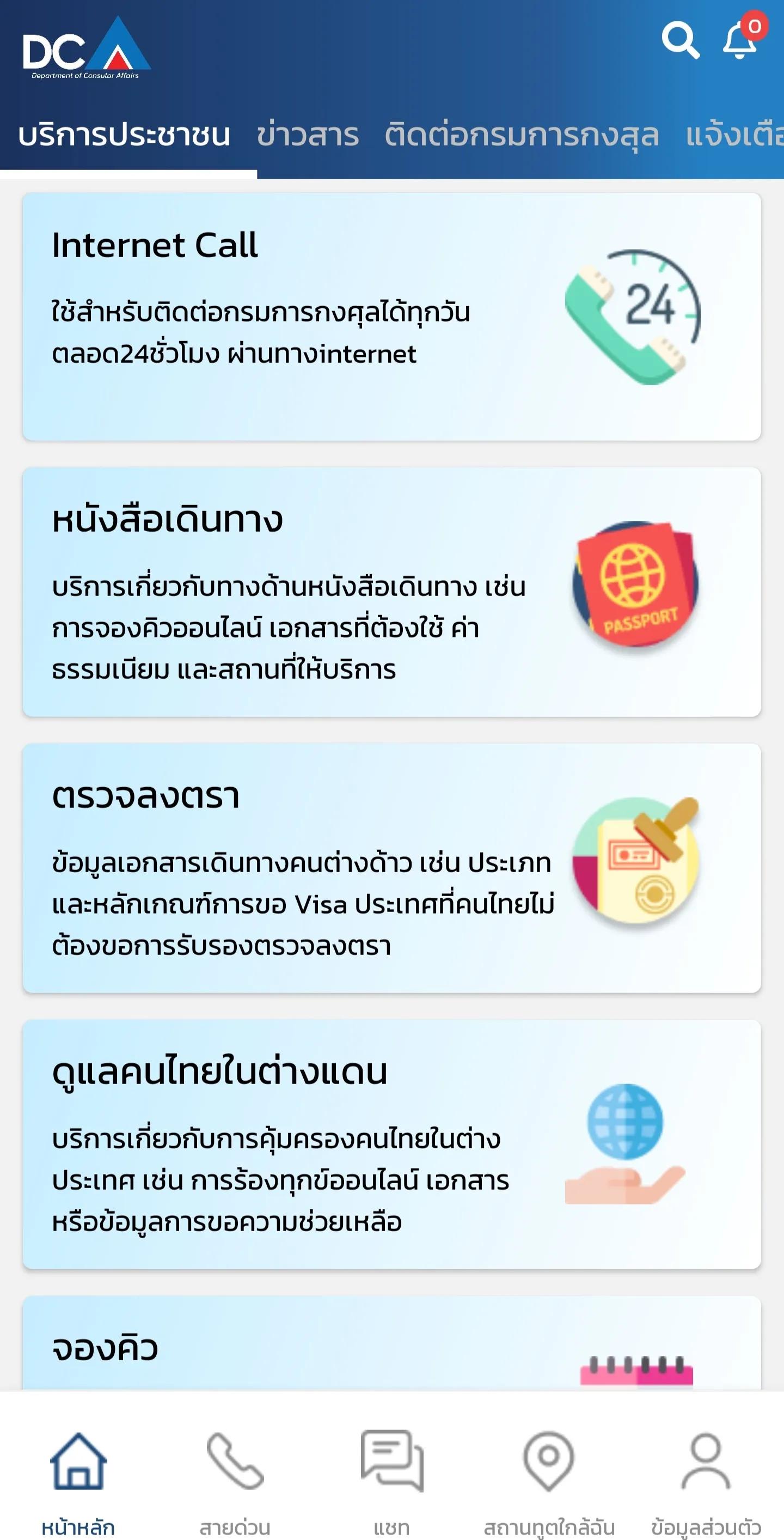 Thai consular application is an application that provides information on services of the Department of Consular Affairs, Ministry of Foreign Affairs of Thailand, such as 1) Passport service 2) Visa document issuing service 3) Nationality and Legal Services 4) Protection of Thai people abroad 5) Non-Kingdom Election Coordination Center...