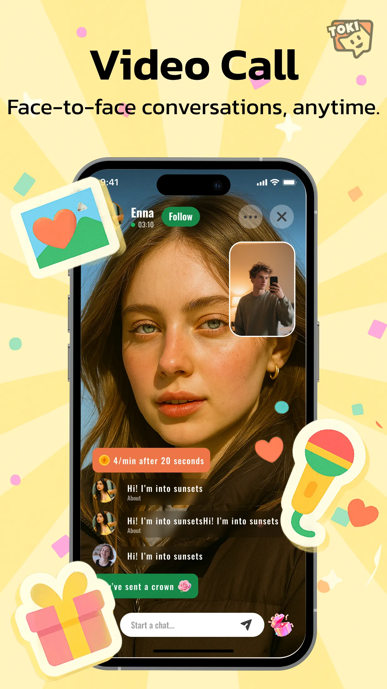 Toki is more than just a chat app — it’s a place where stories, laughter, and late-night talks come alive. Here, every conversation begins naturally, without the noise of endless feeds or fake profiles. Whether you’re looking for a friend to share your day with, someone to talk about your passions, or just a calm voice before sleep, Toki gives you the space to connect in your own way. What makes Toki special? ● Easy Access to Chats: Jump into casual conversations or friendly exchanges whenever you’re in the mood — no rush, no hassle. ● Authentic Connections: Talk with real people, no fake profiles or staged personas to distract from true interactions. ● Safe & Comfortable: Privacy and respect are at the heart of every interaction....