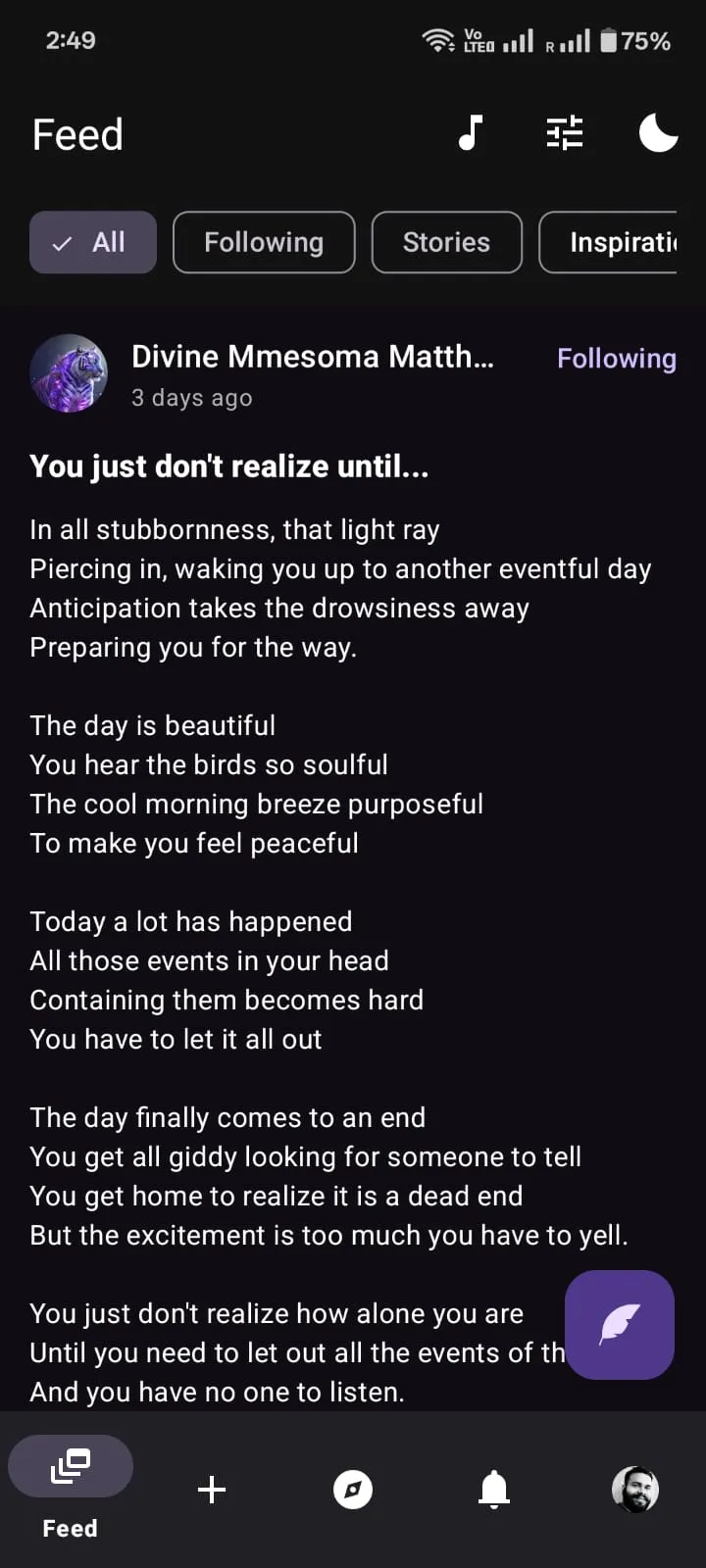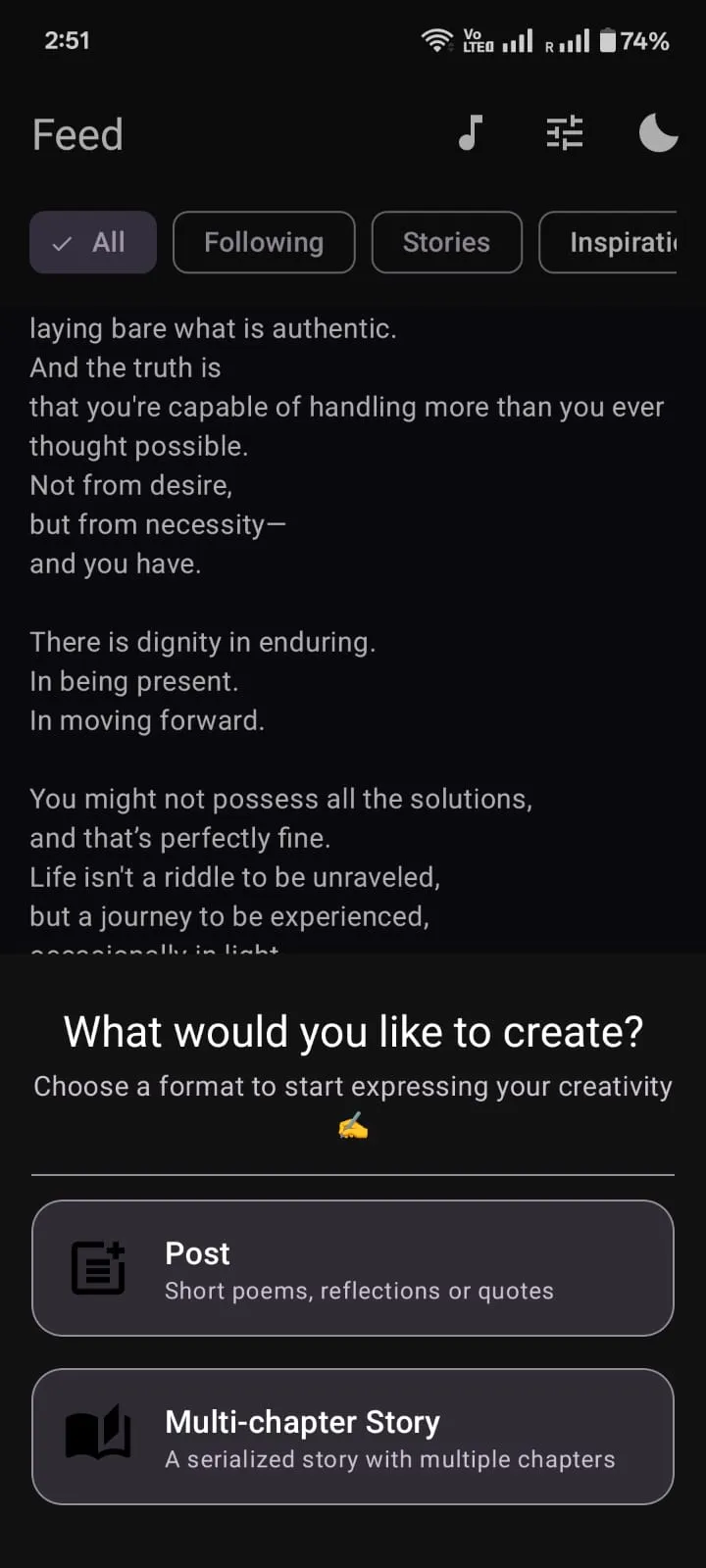 Unwind is a peaceful, distraction-free writing app designed for poetry, journaling, stories, and emotional expression. Built with a clean Material 3 design, Unwind removes noise, pressure, and social comparison โ giving you a private space to write with clarity and calm. Whether you're journaling to heal, writing poems, exploring creativity, or sharing stories, Unwind gives you a safe, supportive environment to express yourself. โจ WRITE FREELY WITH POWERFUL TOOLS ...
