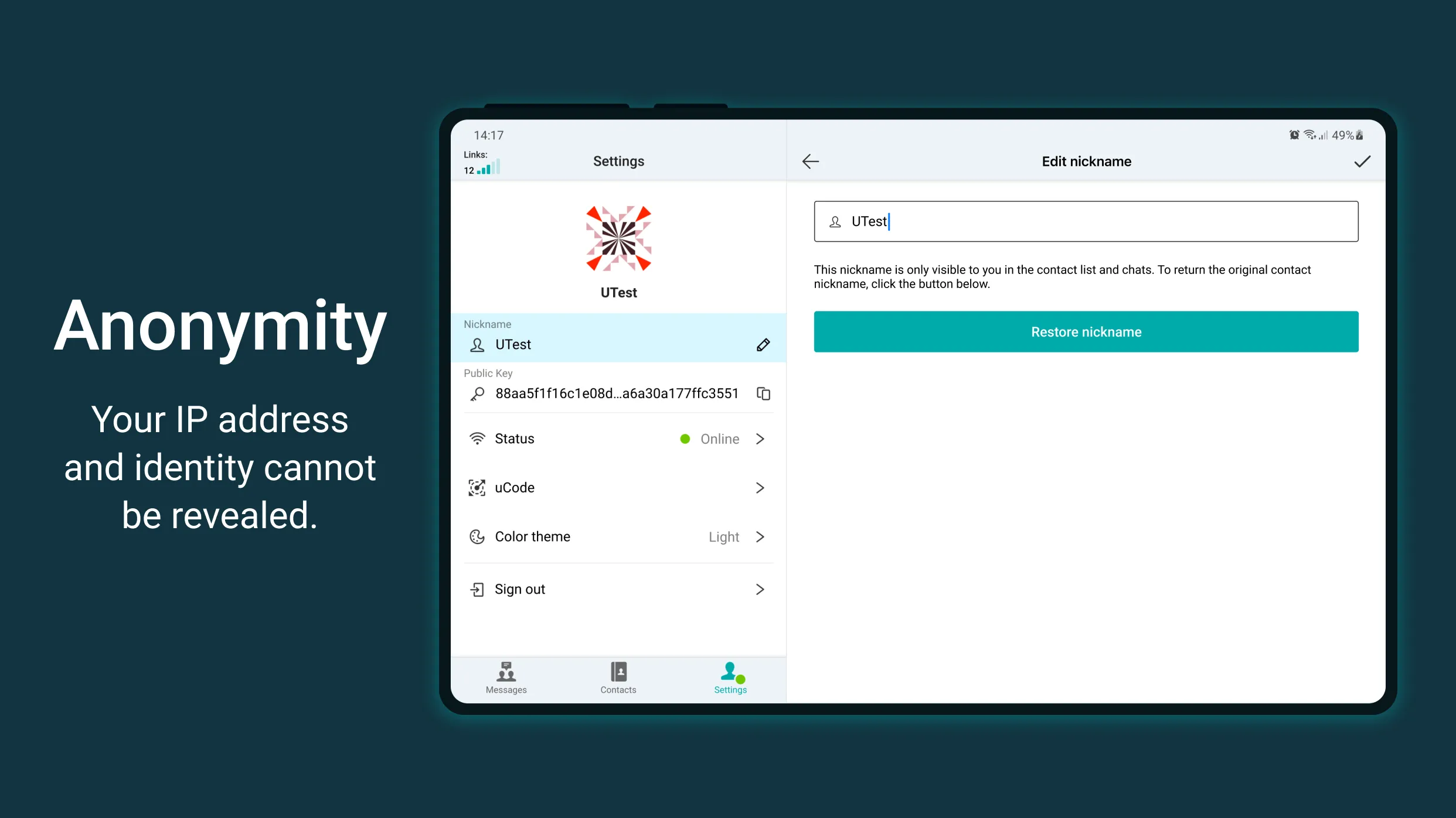 Utopia is a breakthrough decentralized and private P2P messenger with no central server involved in data transmission or storage. Introducing Utopia: the ultimate private messenger app and Tor alternative that respects your privacy! With Utopia, there's no need to provide your email or phone number. As a fully decentralized messenger with no servers, Utopia secure messenger ensures your messages stay private and secure. It's censorship-free thanks to the unique nature of the Utopia protocol. Say goodbye to Big Tech and hello to Utopia private messenger - the superior Tor alternative to traditional messaging apps. Utopia P2P is a private and anonymous messenger without users identification. For registration, you don’t need a phone number SMS approval, ID card, or email address. Everything you need is to create a chat and invite a friend or several friends. ...