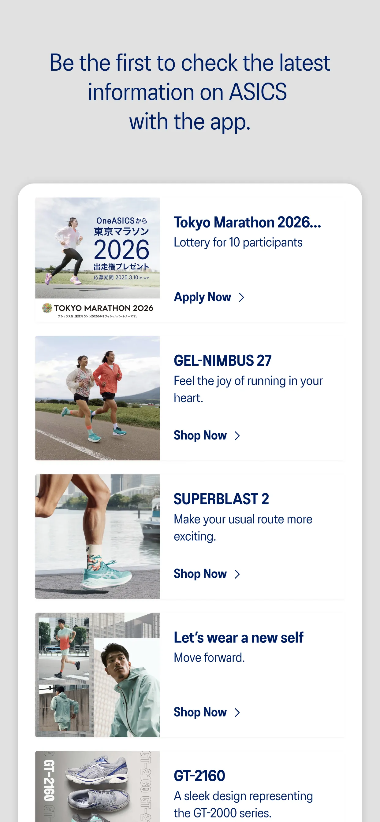 ・Latest product information: Be the first to check out ASICS shoes and wear ・Make OneASICS more convenient: Earn and use points just by showing your barcode at the store ・Smooth purchasing experience: Shop your favorite products smoothly with the app Download the official ASICS app now and enjoy your shopping experience. Free download.