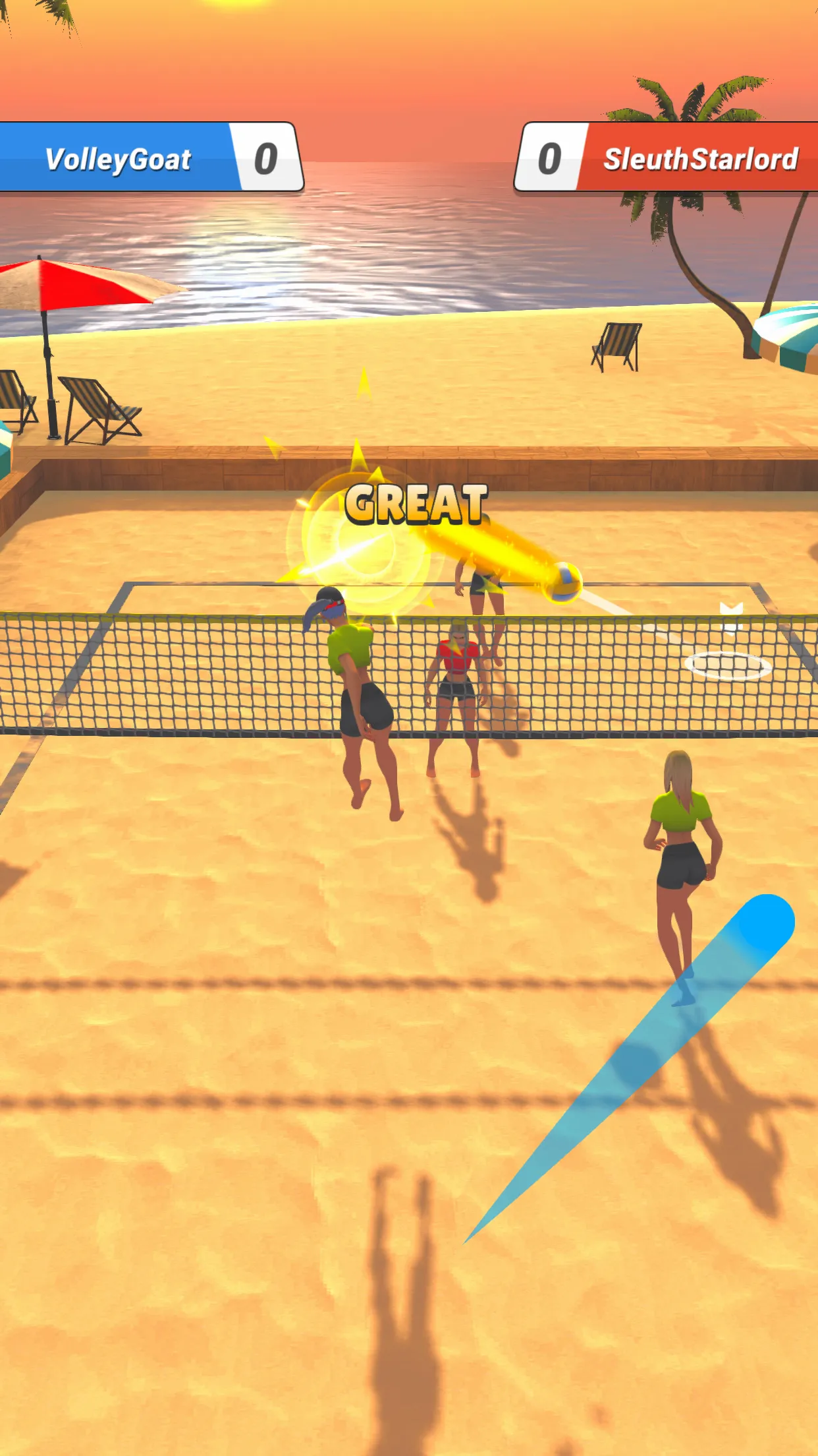 How high can you rank? Beach Volley Clash is an easy to play, satisfying and dynamic beach volleyball game. Tap the screen at the right time to catch the ball and pass to your teammate, then set up a powerful attack with a swipe!