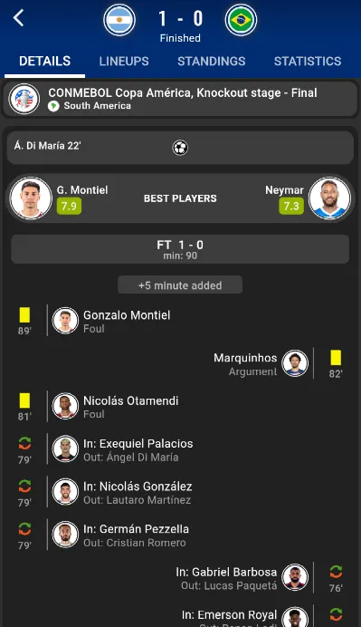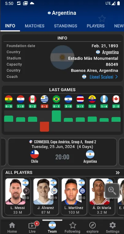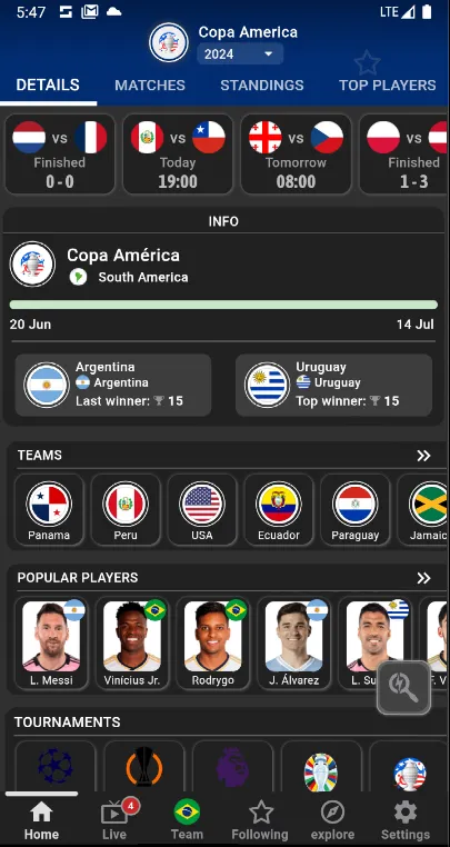 Enjoy the best live soccer results application. Get ready for UEFA Euro 2024 and CONMEBOL Copa América 2024! Excitement grows for the Euro Cup and the Copa América. With our advanced football statistics and analysis, you'll feel like you're right there in the stadium. Our app offers complete coverage, so you don't miss anything. Follow the results live on our scoreboard and follow each phase of the tournaments, from the group stage to the round of 16, quarterfinals, semifinals and the final. ...