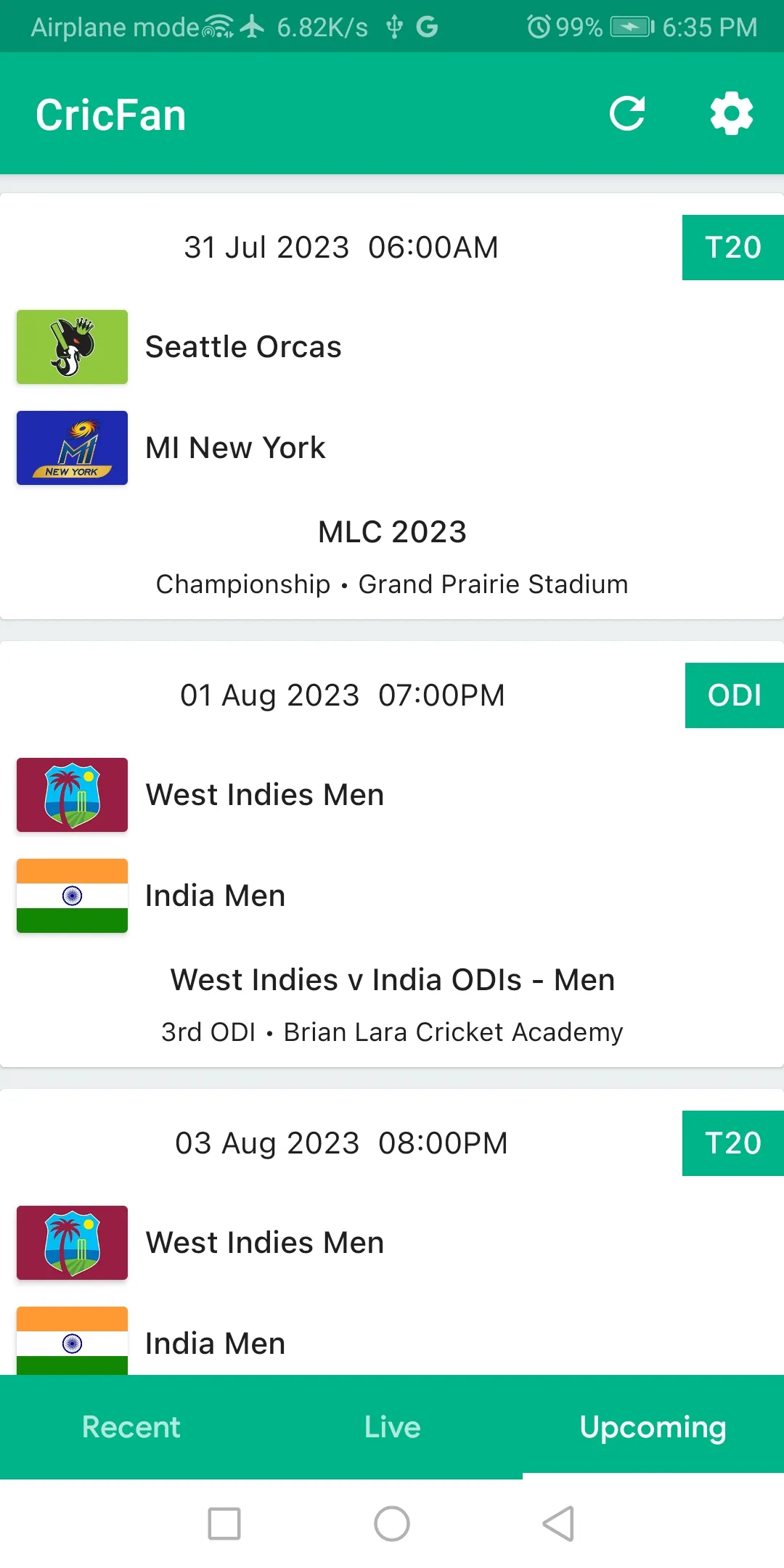 CricFan - Live Cricket Score is committed to provide you the fastest updates score & cmmentary of every cricket matches. Live streaming Of IPL's ,T20's ,ODI's, Test's Matches Scores. Cricket app is an extremely lightweight app for cricket fans with superfast scoreboard and ball-by-ball commentary. The app features all Men’s and Women’s ICC tournaments, IPL T20, Big Bash League, T20 Blast, County Cricket, and much more. The app has a glorious paging view featuring live, upcoming, and reecent matches. It shows a rapid-fire summary of all the best things from the Cricket world in the course of a day for matches and a month for series....