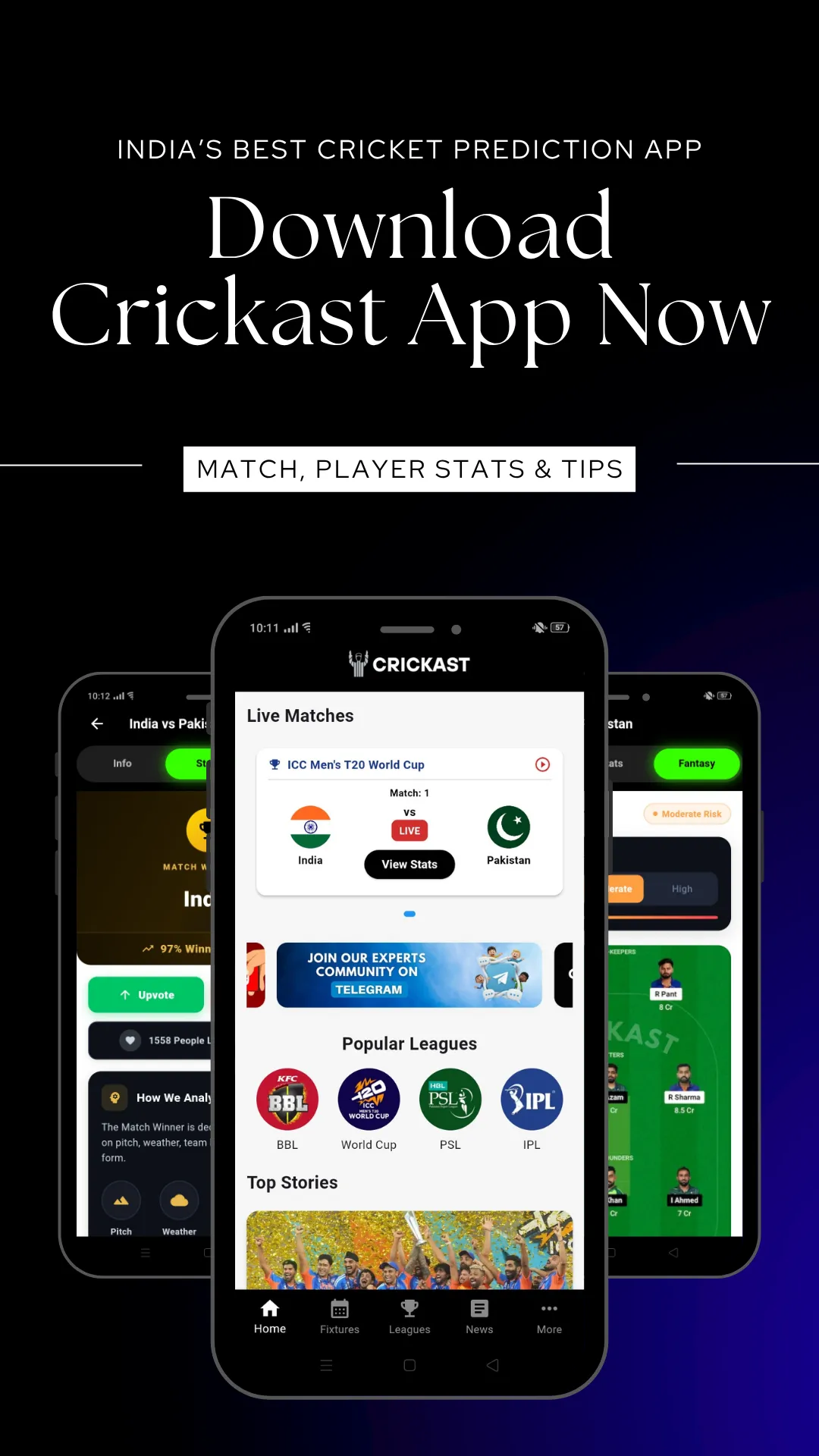 Crickast is a powerful cricket analysis app designed for fans who want detailed match stats, player insights and expert predictions in one place. Whether you follow international cricket or domestic tournaments, Crickast helps you stay informed with accurate and easy-to-understand cricket data. Get access to comprehensive match statistics, team performance breakdowns, and key match metrics. Crickast presents cricket match stats in a clean and structured format so you can quickly analyze ongoing and upcoming matches. Explore player insights with detailed performance analysis, recent form and match impact. Crickast helps cricket fans understand player strengths, consistency, and contributions across different matches and series. ...