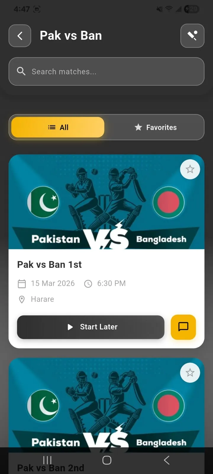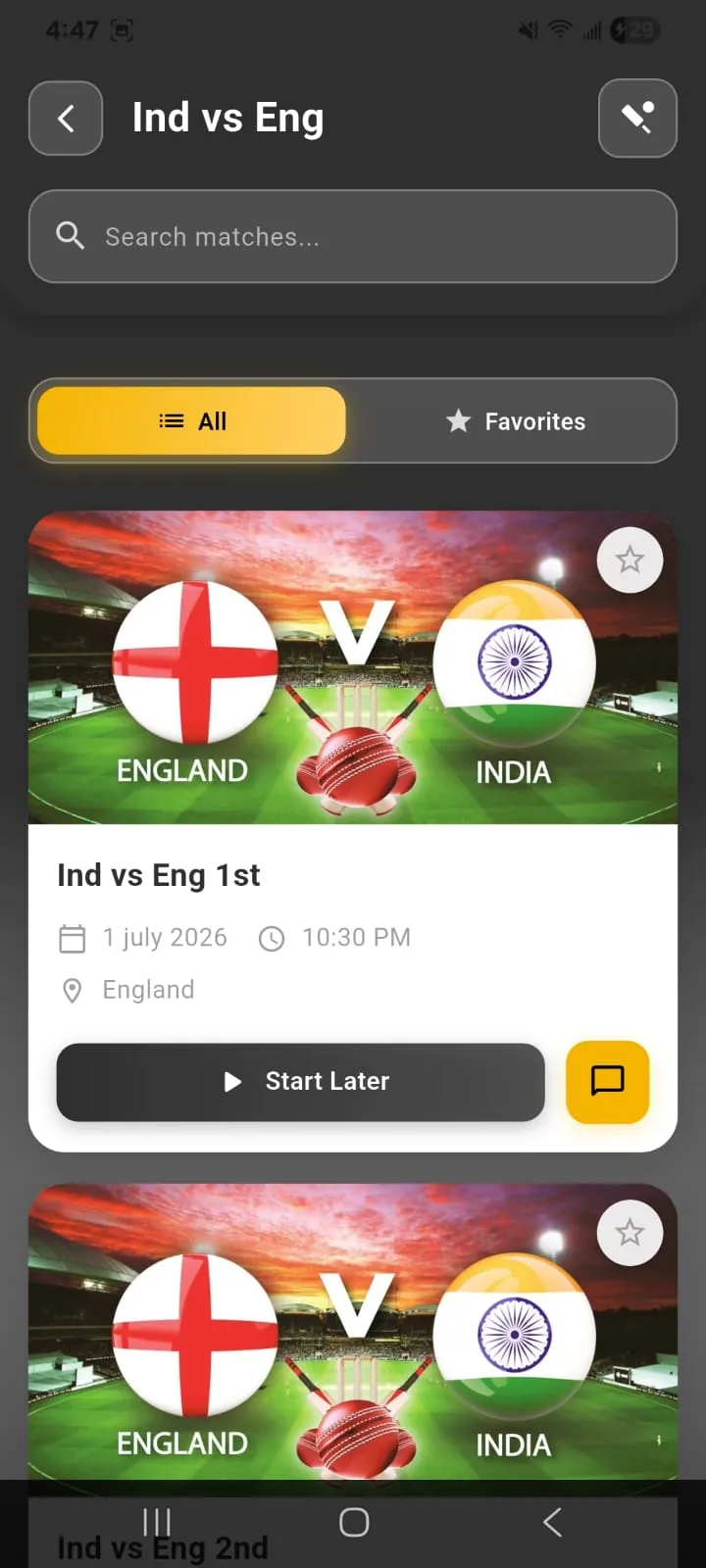Your go-to app for cricket ad football fans! Stay ahead of the game with real-time updates on upcoming cricket series like IPL, PSL, and other major events. Explore detailed match schedules, team info, and event descriptions — all in one place. 📅 Upcoming Series & Match Lists Get the full list of matches for each tournament or series. Whether it’s IPL, PSL, or international tours, we’ve got you covered. ...