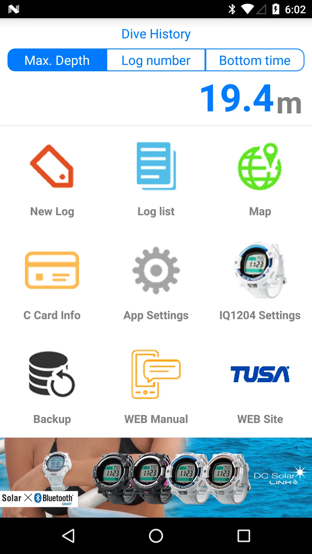TUSA Diving LOG is a diving logbook app, which enables you to upload log data from TUSA IQ1204 DC Solar Link to your smartphone using Bluetooth® SMART. The TUSA Diving LOG App has many customizable functions to record the details of your dive. Information such as entry time, exit time, dive time, maximum water depth, average water depth, water temperature, air consumption, and much more can be recorded. Customize your dive log by recording dive point locations using maps, add photos, and capture signatures from an instructor. In addition, detailed water depth and warning information can be recorded at intervals, and uploaded to your app. Also you can easily export dive log information as images to share on Facebook, Twitter, or other social media. TUSA Diving LOG can be used independently of TUSA IQ1204 DC Solar link to record basic log information. • Featuring: - Customizable scuba diving log book (create, edit, and browse log history) - Graph display of depth intervals - Record dive point locations using maps...