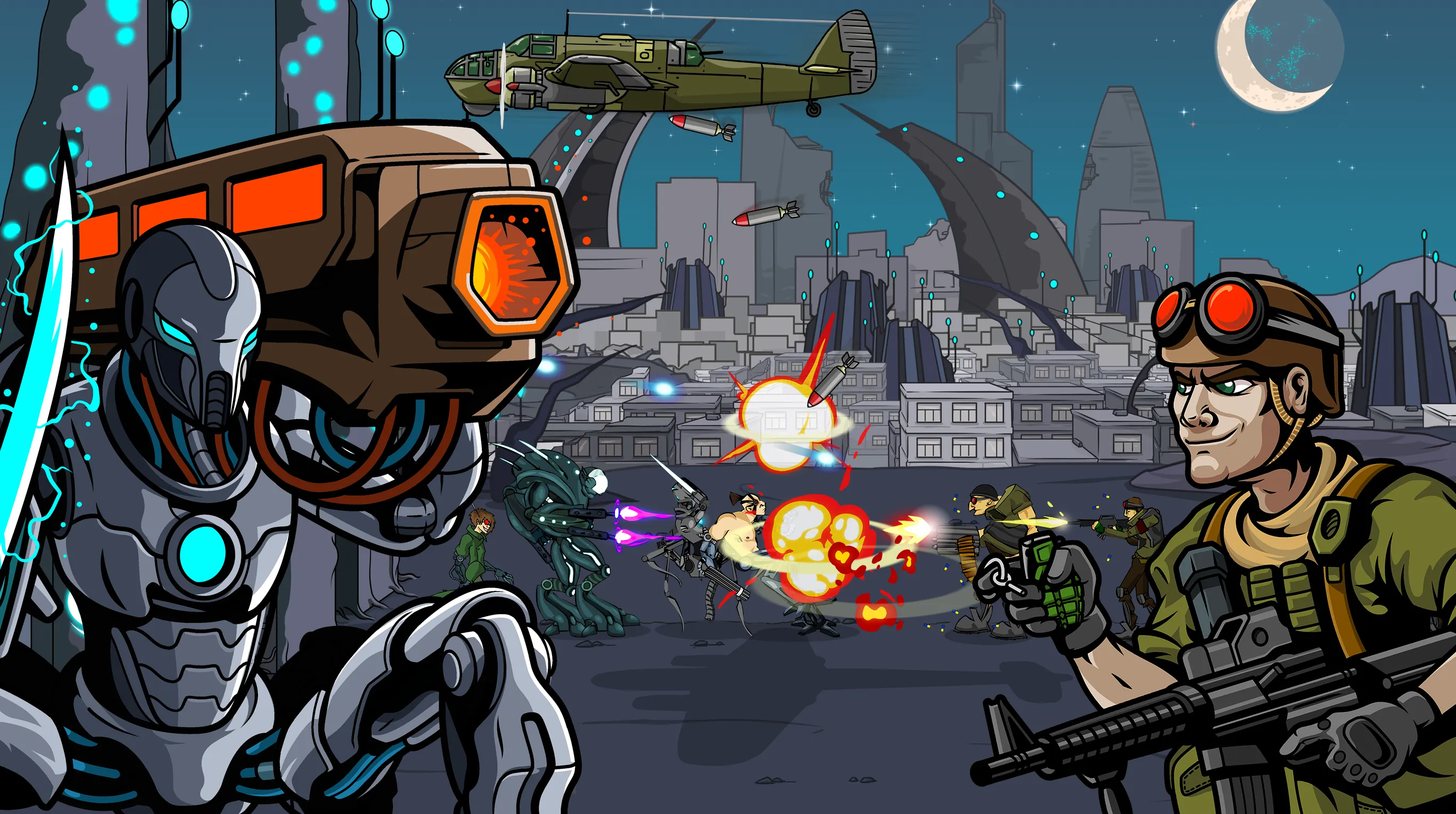Battle your way through the ages in this insanely addicting action/strategy game. One of the most popular flash games from the web brought to life for the best possible mobile experience! WAR ACROSS THE AGES! Train a massive army from cavemen riding dinosaurs to World War tanks! All the way to hugely devastating robot warriors from the future age! There are so many different units to train across 7 completely unique ages of war. With 29 unit types at your disposal such as the Assault Spartan, Anubis Warrior, Mages, Knights, Rifleman, Cannons, Grenade Soldiers, Cyborgs and so many more! If you think the best offense is a strong defense try stacking up rows of turrets that mow down the enemy! Yes we still have the famous Chicken Turret which is a must build! FUN FOR ALL!...