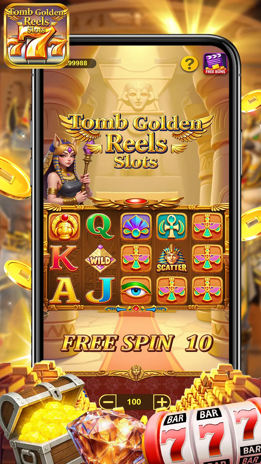 Step into the mysterious world of Tomb Golden Reels and uncover hidden treasures! Spin thrilling slot machines, unlock jackpots, and discover ancient relics in an adventure like no other. Every spin could bring fortune and excitement straight to your fingertips! Feel the excitement of Las Vegas in your pocket! Whether you're a card player or a slots enthusiast, Tomb Golden Reels - Slots Game offers the perfect gaming experience for everyone. **Note:** This game is intended for an adult audien...
