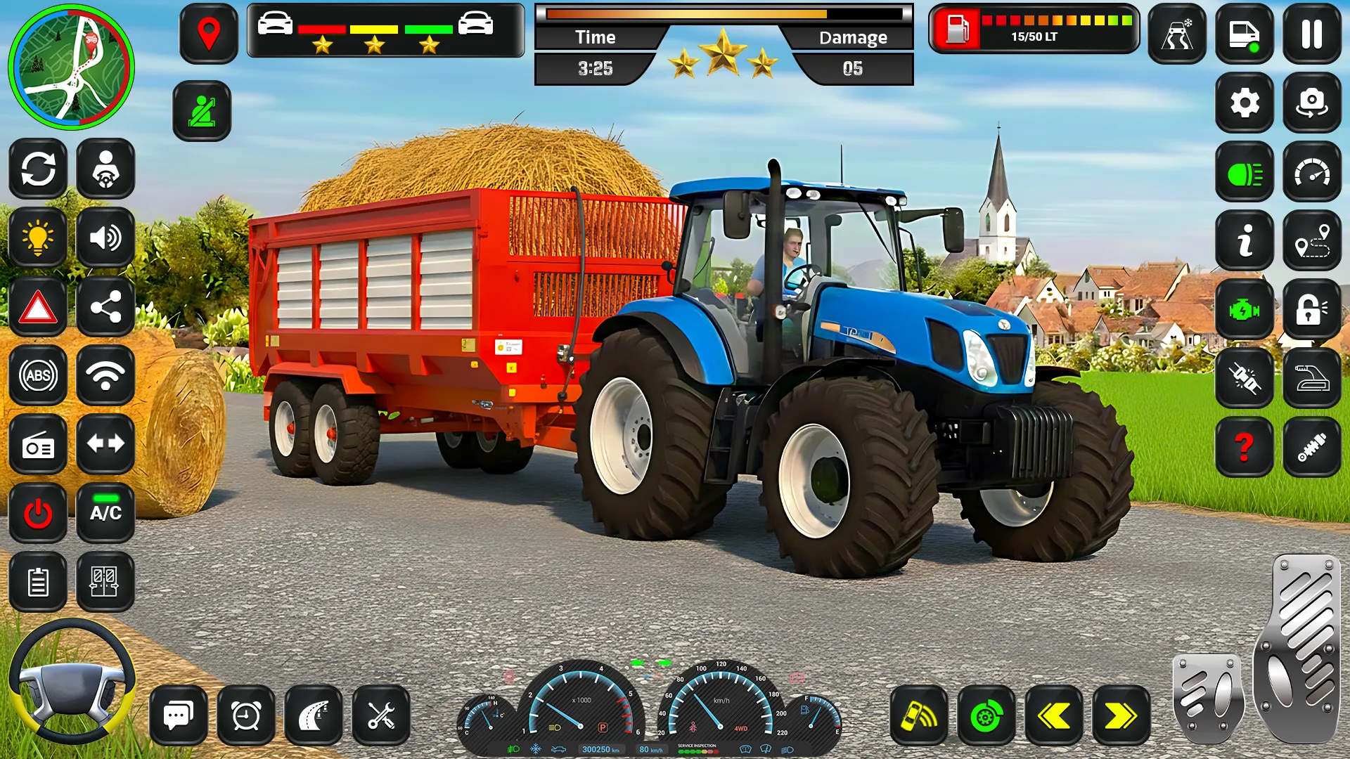 This Tractor Game Driving Simulator is presented by Aspen Gaming 2023 Tractor Game – Village Life Driving Simulator brings you a realistic village experience with exciting tractor, jeep, and harvester driving missions. Step into the life of a farmer and complete multiple challenging levels filled with real village tasks, city deliveries, and heavy vehicle driving. In Level 1, you drive a tractor to transport plants from the village and carefully deliver them to a flower shop in the city. This level introduces smooth tractor driving and realistic cargo delivery gameplay. In Level 2, the farmer drives a harvester to the field, harvests crops, and loads them into a trolley. After loading, you drive the tractor trolley from the field to the city warehouse, experiencing realistic crop harvesting and transport missions. In Level 3, the farmer takes the tractor to the field to start the tubewell, but the tractor runs out of fuel. The player then uses a jeep to travel to the fuel station, brings fuel back, starts the tractor, and runs the tubewell. This level adds a unique fuel management and vehicle switching experience. In Level 4, the farmer’s tractor has become old. To get a new tractor, the farmer drives a jeep, buys a new tractor, and brings it to the village. With the new tractor, players can enjoy smoother tractor driving and Transport Missions...