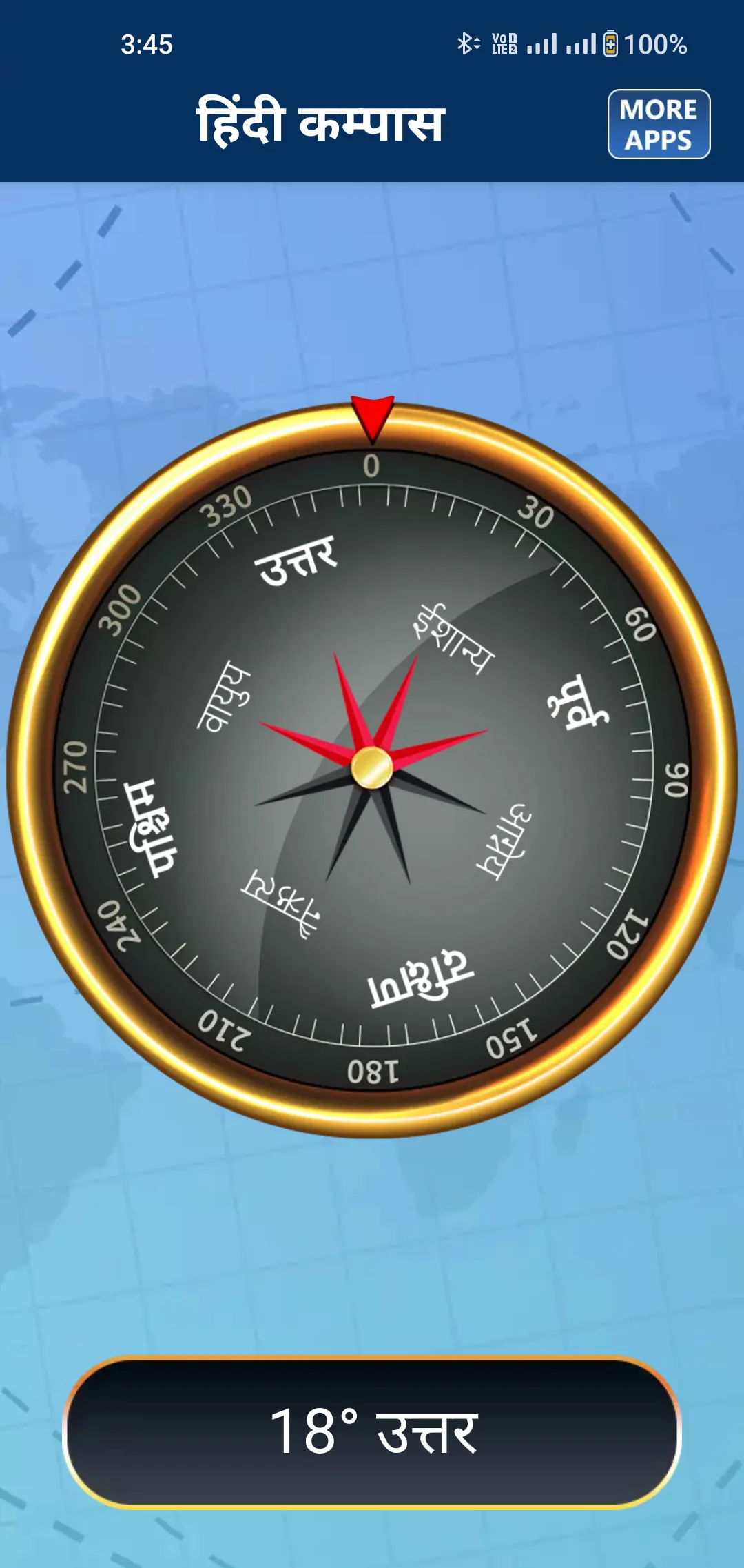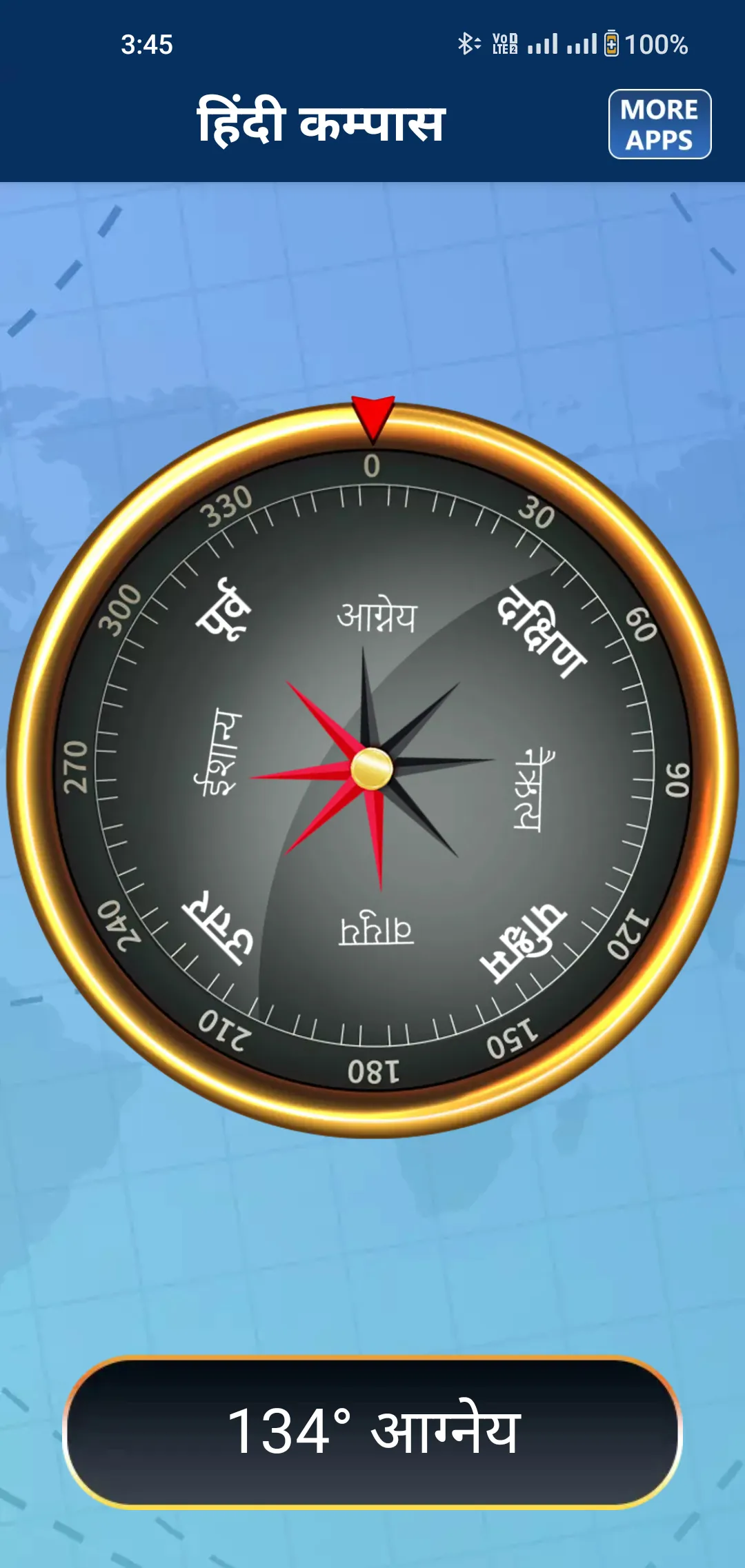 Hindi Compass 2023 is Pocket Compass in regional language. Features :- * Very Small App * After Installation No Need Inter Net Offline Also Working * This is For Hindi People Directions North = उत्तर North-East = ईशान्य East = पूर्व South-East = आग्नेय South = दक्षिण South-West = नैऋत्य West = पश्चिम North-West = वायुय Hindi Compass 2023
