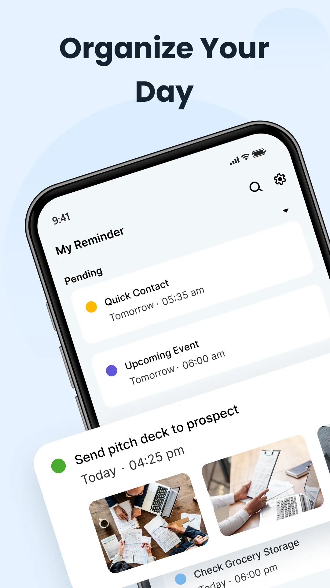 Reminders for all of life’s to-dos, grocery lists, projects, tasks, & agendas The newly added "After Call" feature allows you to quickly set reminders right after a phone call, ensuring you don't forget important tasks. Reminder is one of the simplest and best phone reminder apps for scheduling tasks, appointment reminders, and agendas, with an alarm to notify you when events are scheduled to improve your time management. ...