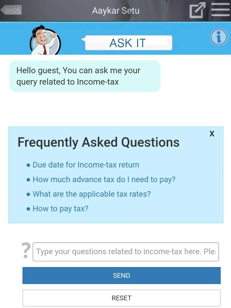 Aaykar Setu – It’s a free mobile application. It provides linkage to various services of the Income-tax Department through a single window. The Utilities of Aaykar Setu are: • Ask IT – A CHATBOT provides answer to the queries raised by taxpayers in no-time. • TPS Vertical - The taxpayer can locate the nearby TPS offices • Tax Tools – Provides quick tax calculation like HRA etc. ...