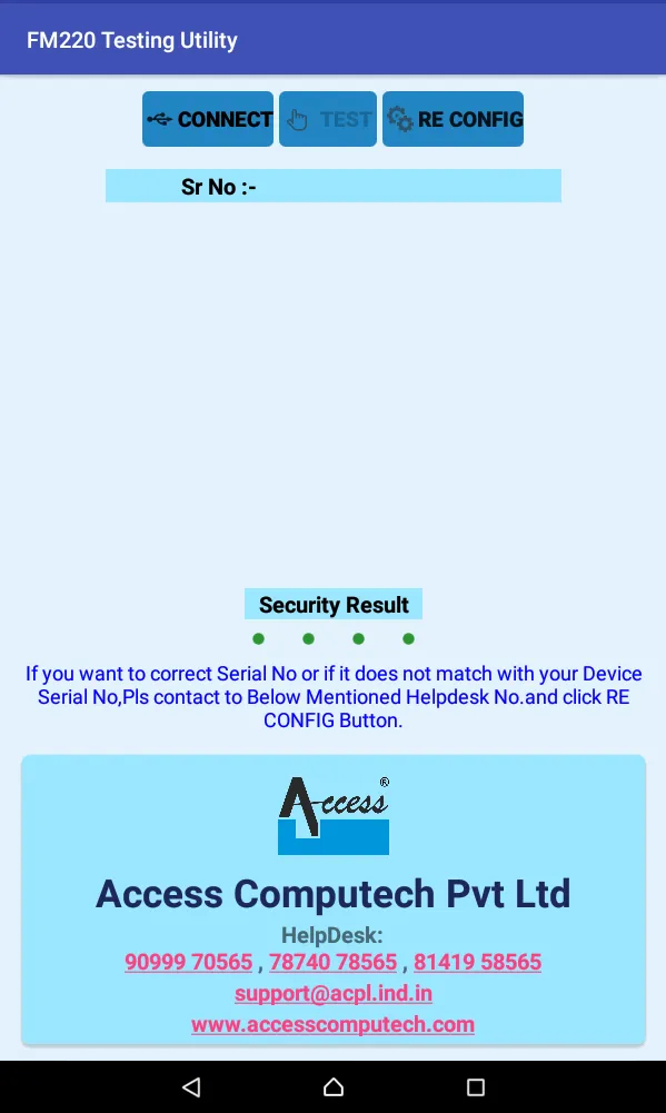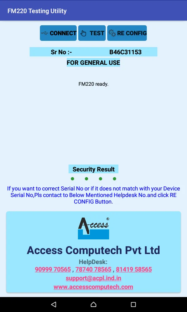 FM220 Testing Utility | Indus Appstore | Screenshot