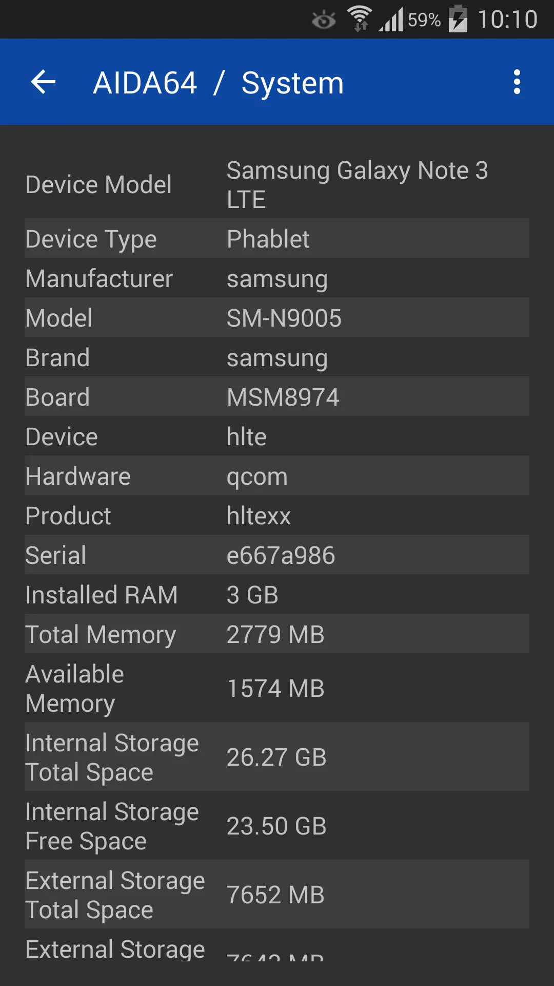 Hardware and software information utility for Android based devices. Based on the extensive hardware knowledge of the AIDA64 for Windows application, AIDA64 for Android is capable of showing various diagnostic information for phones, tablets, smartwatches and TVs, including: - CPU detection, real-time core clock measurement - Screen dimensions, pixel density and camera information - Battery level and temperature monitoring - WiFi and cellular network information...