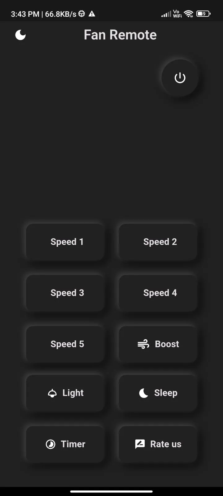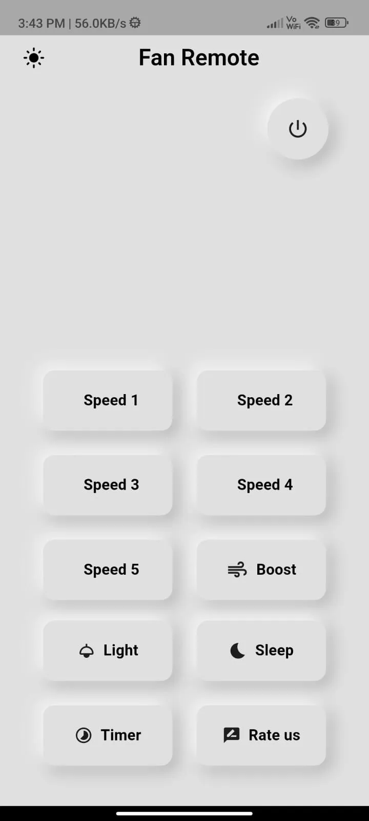 This application serves as a remote control for Atomberg Fans, leveraging the mobile IR blaster to transmit signals to the fan's receiver. Through the app, users can conveniently adjust fan settings, including speed and mode, using their mobile devices. The seamless integration of the mobile IR blaster ensures a reliable and responsive connection between the app and the Atomberg Fan, providing users with an enhanced and user-friendly experience in managing their cooling preferences.