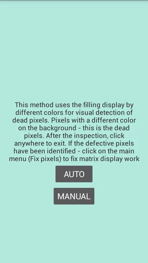 Bought a new smartphone or want to check on the old smartphone matrix display? In this program you can test your LCD screen for the presence of dead / broken pixels and repair it. You can detect any stuck or dead pixel on your LCD screen. Defective pixels - are pixels on a liquid crystal display (LCD) that are not performing as expected. If you detect any stuck or dead pixels you will be able to try to cure them. Provide easy way to fix the stuck pixel. The program will try to use different means for the treatment of stuck pixels. Also works for screen burn-in. Start and wait on the smartphone or tablet this app until the dead pixel or stuck pixel has been repaired or unstuck. Phantoms are a partial manifestation of a static image (burnout) of the matrix. The application also copes well with the treatment of such problems....
