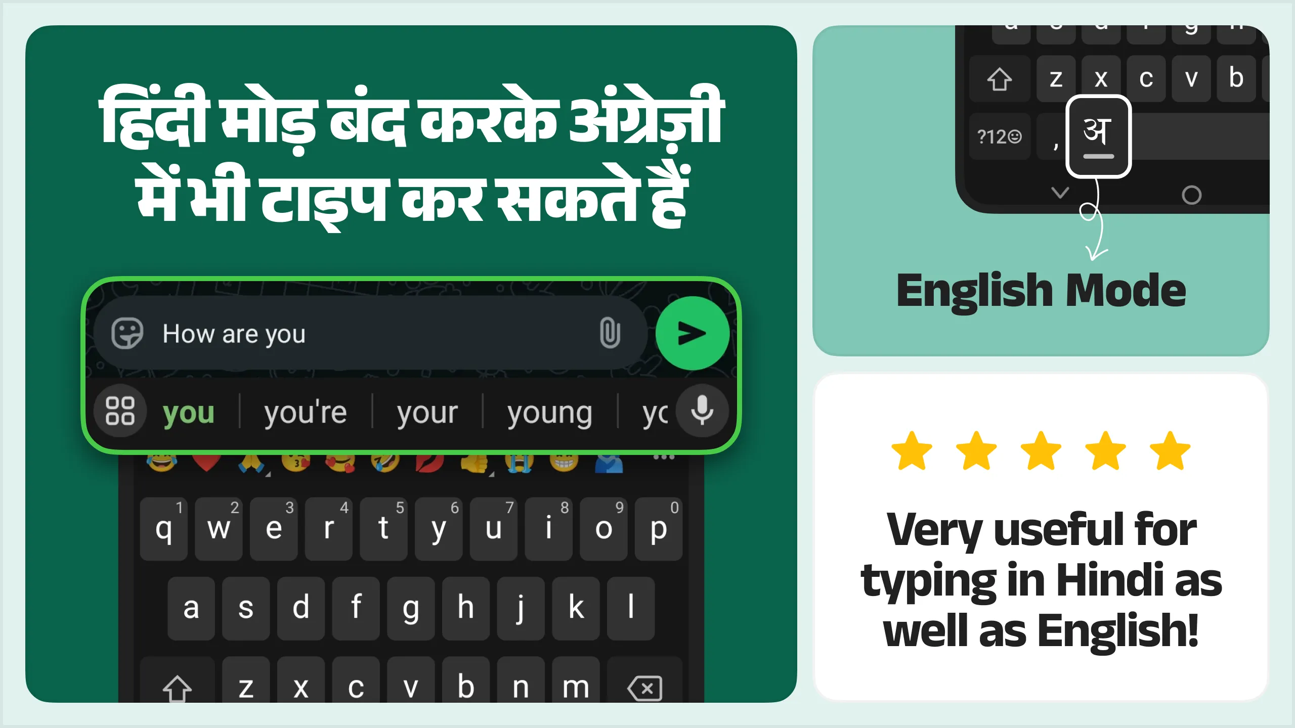 Desh Hindi Keyboard is an English to Hindi keyboard app that makes typing Hindi faster than ever before. - Type in English to get Hindi letters - Hindi movie dialogue stickers & GIFs. Powerful Hindi emoji keyboard. - Works inside all apps on your phone - a Hindi typing keyboard app for all social media and messaging apps - Saves time compared to handwriting input or other Indic Hindi input tools....