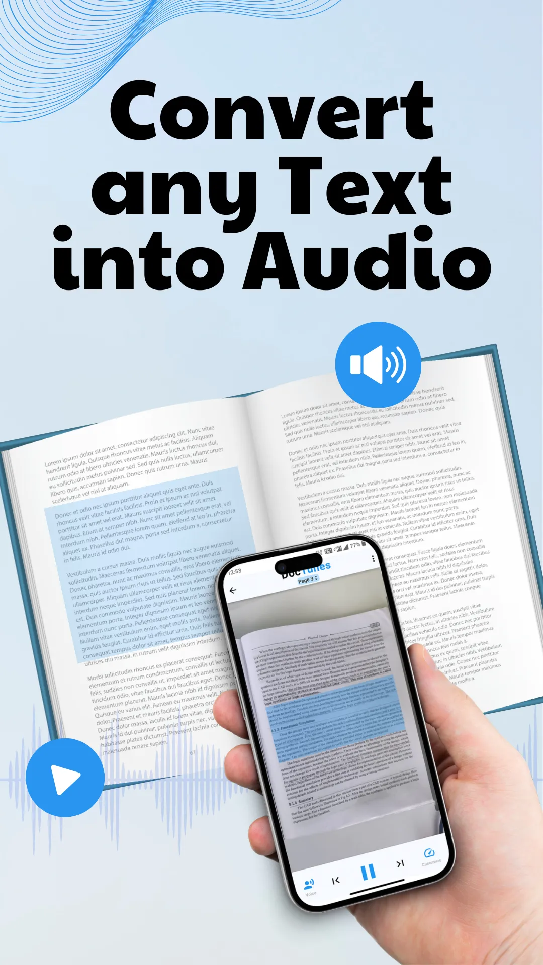 DocTunes- PDF & Text to Speech is one of those useful TTS apps that lets you convert documents like pdfs, images, or text to speech into more than 70+ Languages and 500+ different Male/Female voices to choose from. If you are looking for text to speech apps that are easy, seamless, and available worldwide, then trying our speech audio app will be worth the effort. Want to listen to your documents or read them with a human voice? No problem! DocTunes TTS app lets users publish their documents (pdf, doc txt, etc.) or an Image (including handwritten) and convert them into audiobooks (human-like Voice) in their native language. This text reader helps you to remove the language barrier in reading and understanding documents. You can also select the speed and pitch of the audiobook. ...