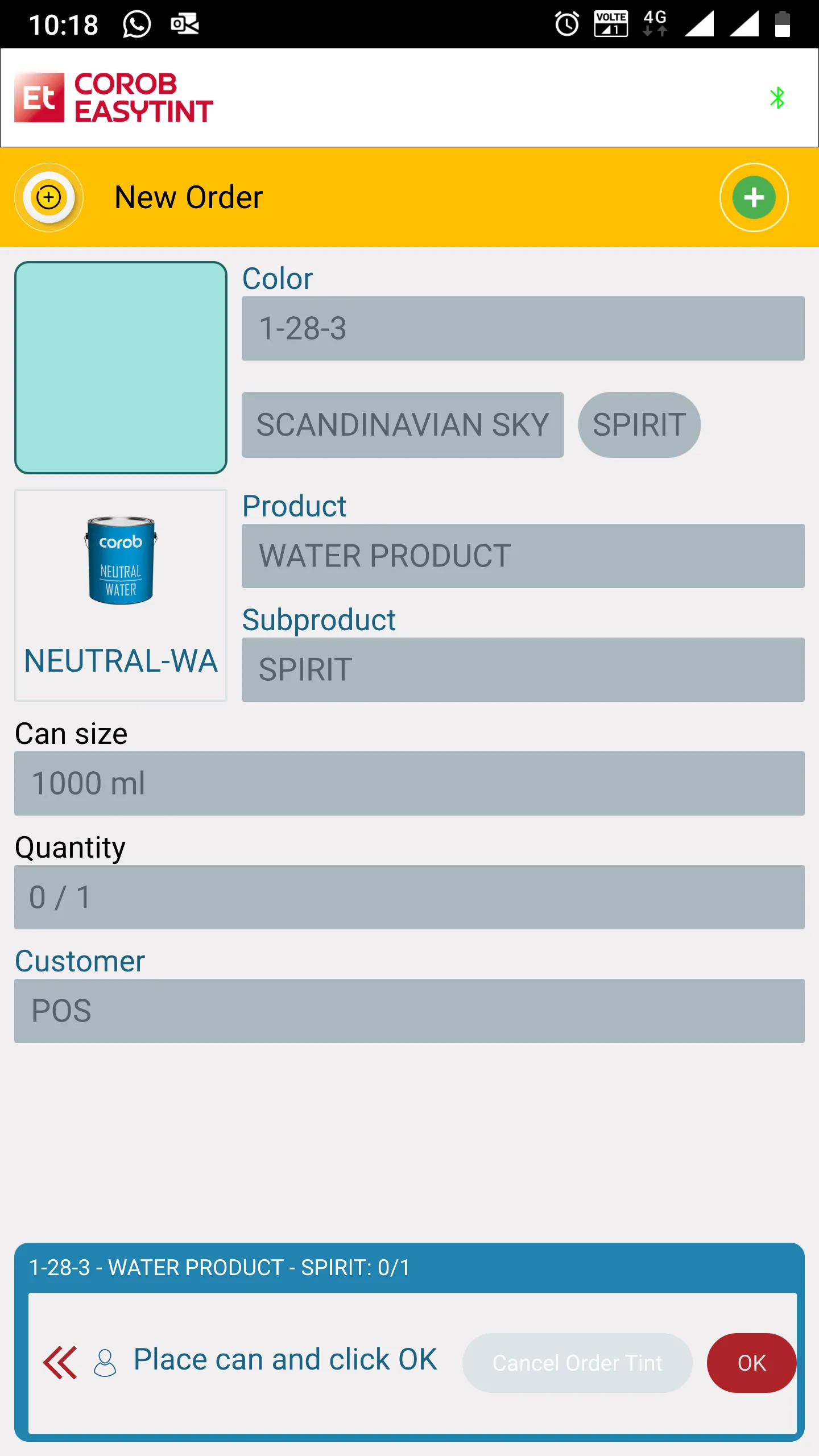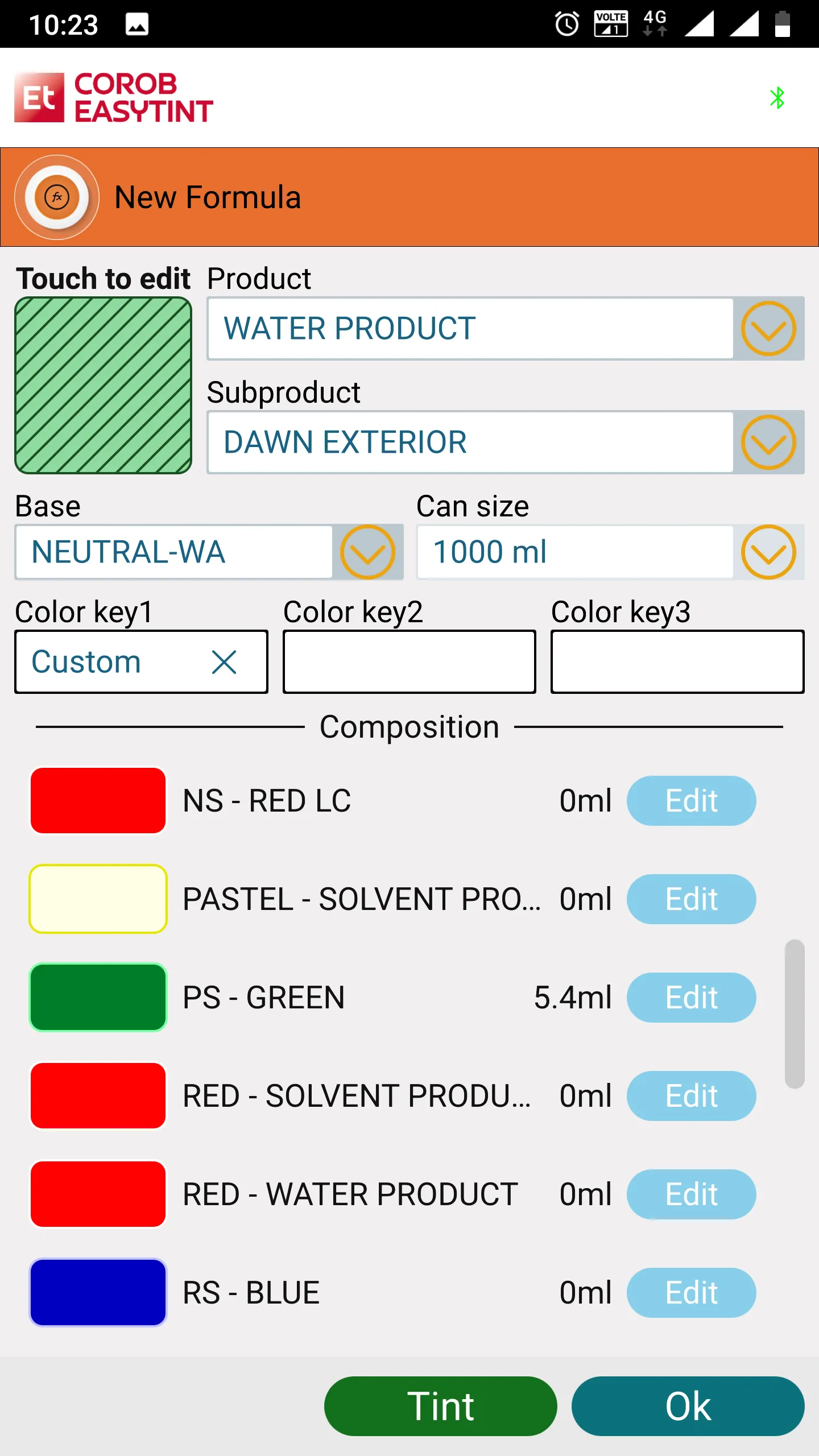 COROB EASYTINT is a complete point-of-sales application which manages all the tinting activities on the COROB 5G dispensers by using your smartphone or tablet. No more worries about the additional cost and maintenance of a desktop computer in the shop! With a simple and easy to use interface, this app allows you to tint the colors chosen from the formula book. The desired color is not there? No problem, create your own custom color and tint it. The user can operate the application with limited functions; for the full mode, the activation password is needed which can be provided by the referencing company supplying the paint, for which licenses have been granted....