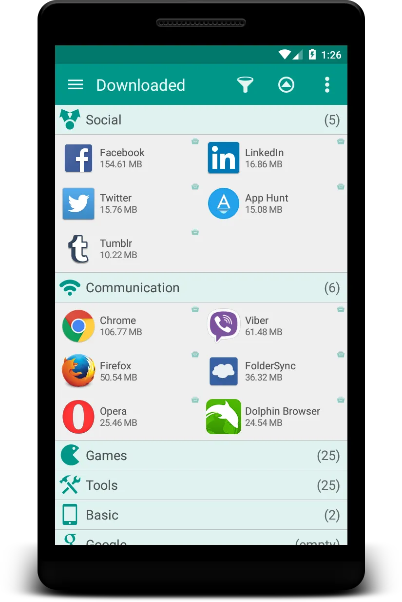 Looking for a better alternative to Android default application drawer? Need a handy application manager? Have hundreds of applications that need to be organized and managed? Do you want to backup and restore third part application packages. Try out Glextor App Manager. It is one of the best and full-featured app manager and organizer for Android! App organizer Organize your applications with auto-grouping to folders feature which is based on Google Play categories. Newly installed applications can be categorized automatically. If you want to get more personalized structure, create your own folders or just rename predefined ones. It is possible to assign each application to several groups at the same time according to your needs. Use system folders to get quick access to most used, last used, or last installed apps....