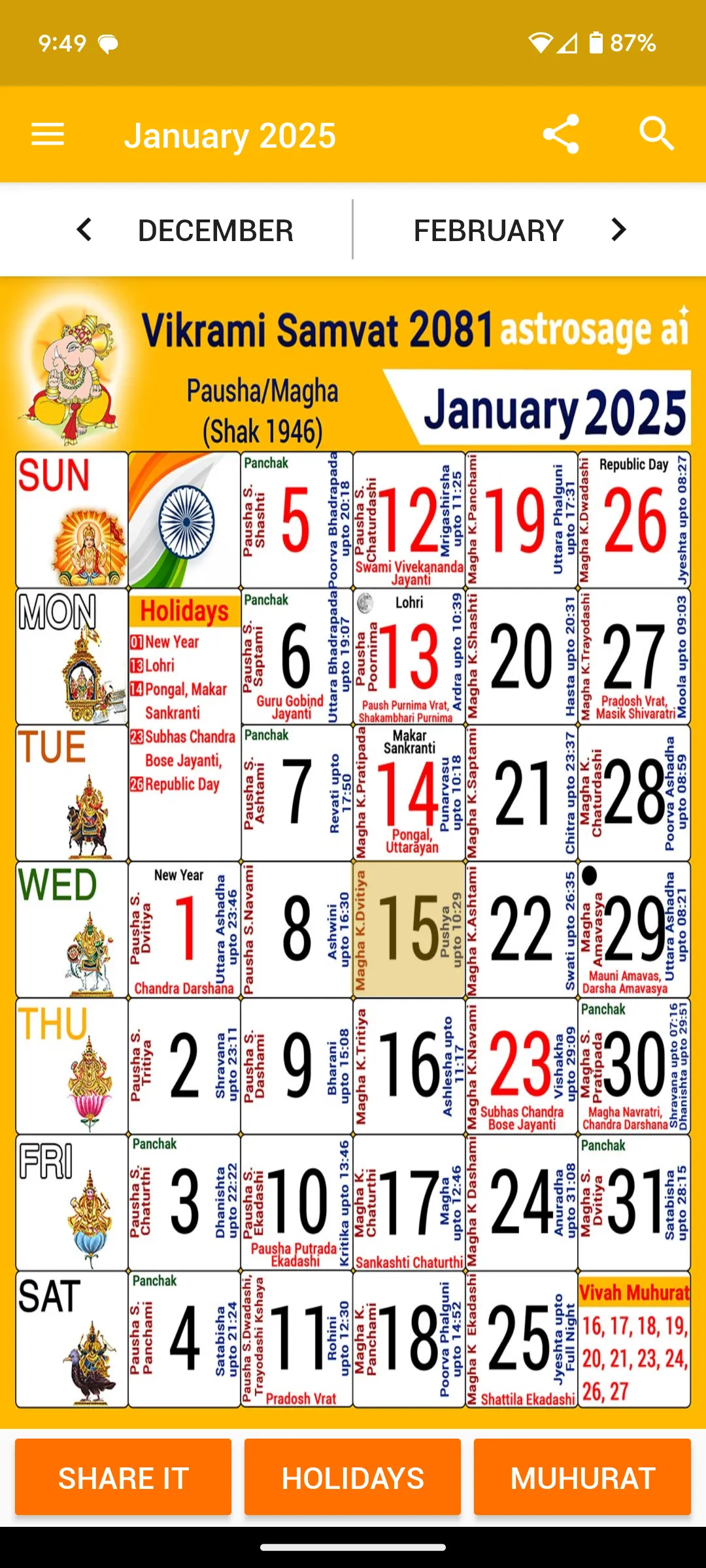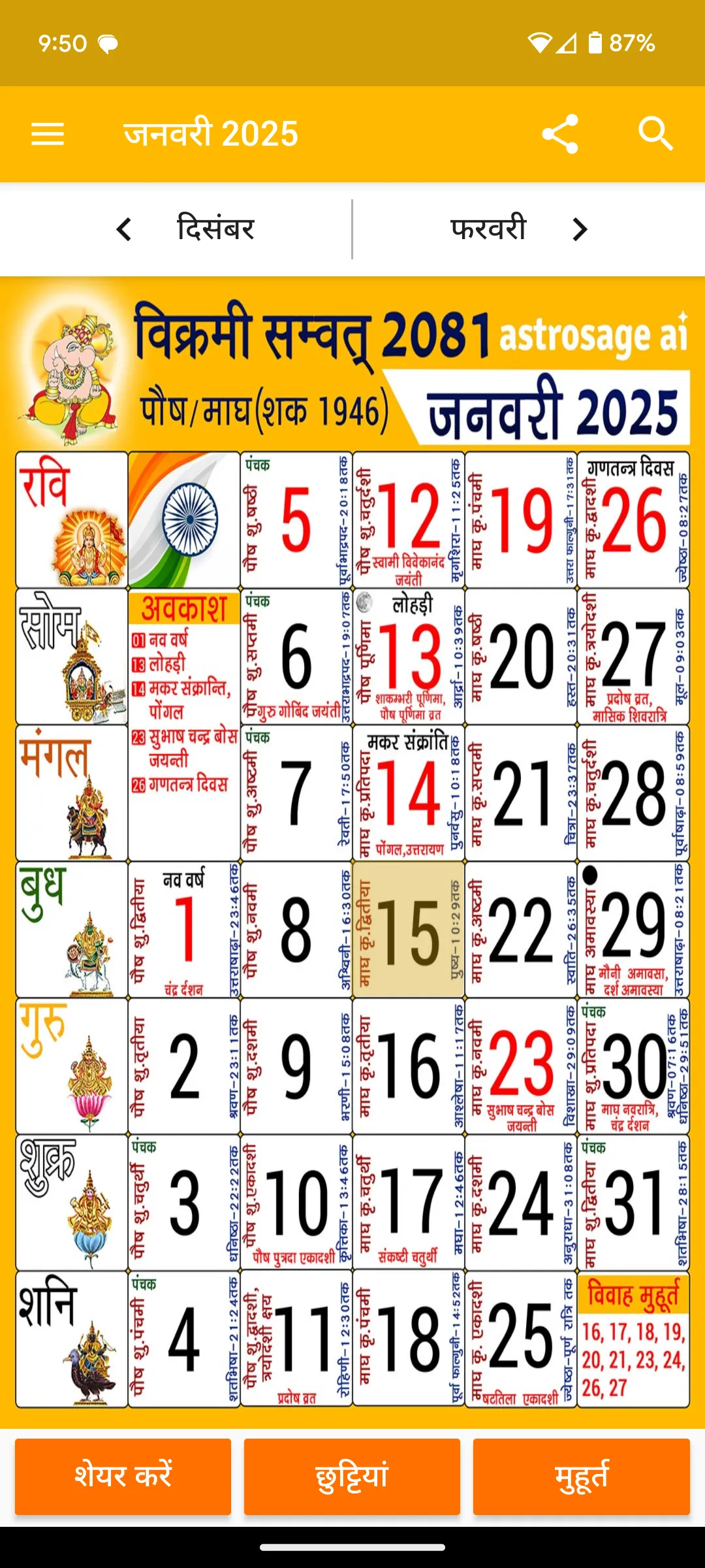 2025 Calendar by AstroSage or IndiNotes is a free calendar, reminder, notes taking and planner app. People can use this app to stay organized and updated. In this all-in-one app, you can view calendar and see all fast, festivals and 2025 holidays. Using this app, you can manage your planner and set a reminder of any important task and event. In this app, you can also create shopping lists using general notes. Take Notes on Your Hindu Panchang 2025 with IndiNotes by AstroSage In India, it is a tradition to take notes on calendar, also called panchang. People note down various points like “newspaper was not delivered”, “how much milk is bought on a date” or “when to pay bill”. The same old feature of taking notes on your panchang is now available in this mobile app “2025 Calendar”. Now, in place of traditional panchang or calendar, you can use our “2025 Calendar” app to take date-wise notes and manage your month. This app has everything that a traditional panchang has, but many incredible other features. For example, you can share your whole monthly notes on WhatsApp with just one click. IndiNotes is like your panchang and notes taking app rolled out in one single app. ...