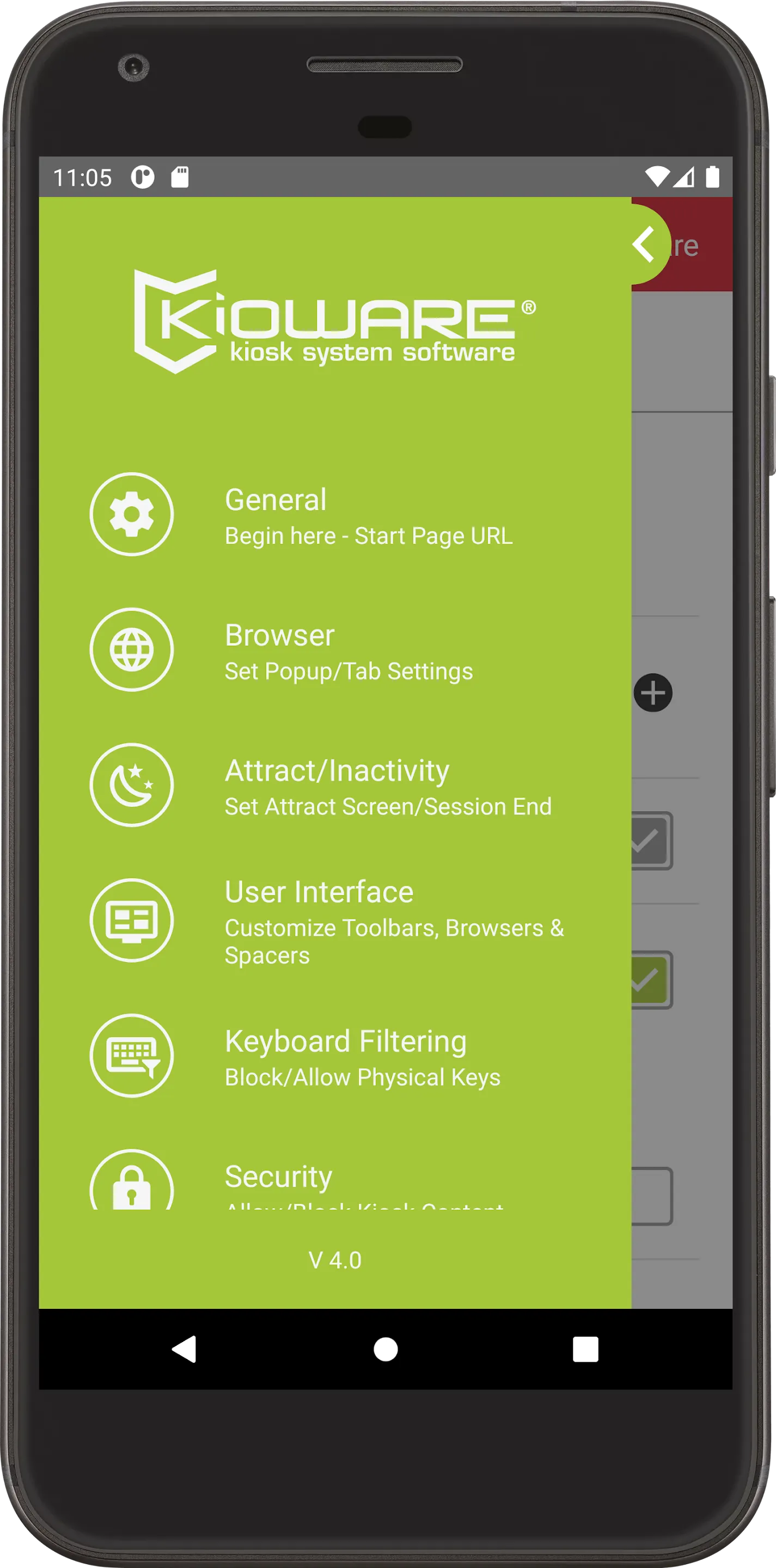 Before downloading this app, please note: Free version is an unlimited trial with nag screen. Purchase a license to convert free version to a full version without the nag screen. ( http://m.kioware.com/purchase ). Turn your tablet or phone into a kiosk with the KioWare for Android kiosk app with a new Guided Setup to assist with your first time setup or basic configuration changes. KioWare for Android is Android kiosk mode software designed to lockdown Android devices, securing the OS, home screen and browser, as well as limiting Android applications a user can run. This is a tablet kiosk app for Android that creates a kiosk tablet environment for your Android device. This kiosk lockdown app offers Lite, Basic and Full with Kiosk Management versions, depending on your Android lockdown needs....