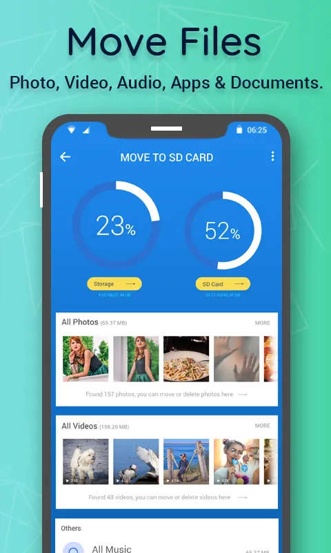 Get the all new and the most advanced Move To SD Card App which allows you to Move Files To SD Card as well as Move App To SD Card. Move your Photos, Videos, Musics, Zip Files, and all Other Downloads from your Phone Memory to SD card. You no longer have to worry about low Internal Memory. Move To SD Card or Auto Move To SD Card is a must have app for everyone who is using a SD Card or a Memory Card so that your Phone Internal Memory occupies the lest place. KEY FEATURES FOR MOVE TO SD CARD :- ...