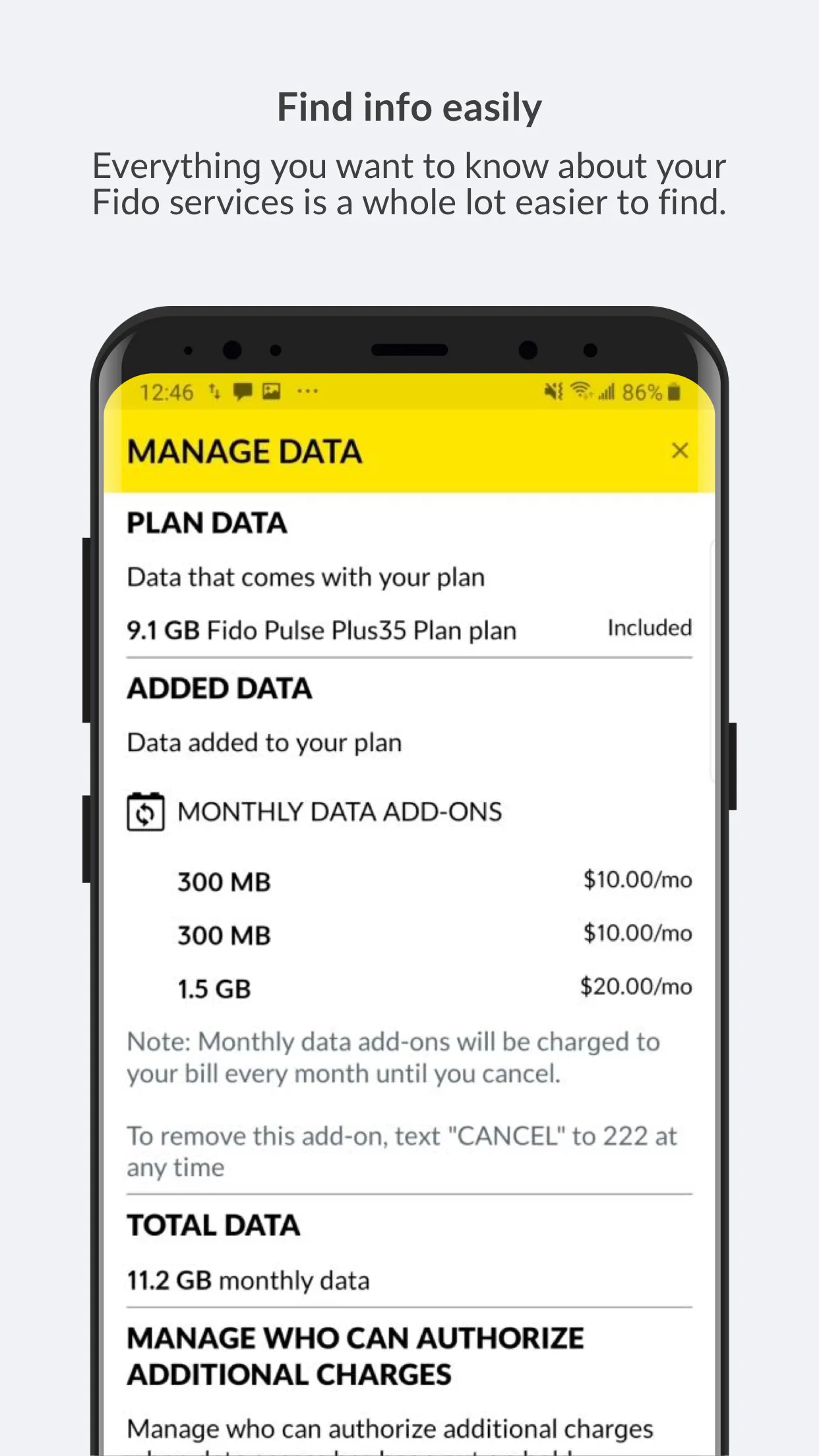 • Track your data usage in real-time and track your airtime, text messaging and long distance usage according to your schedule • View your bill, and save/print a PDF with full details • Make a secure payment with your Credit Card on-the-go • Get 5 EXTRA hours of data – 1 hour, 5 times a month, with all Fido PulseTM plans • Manage your travel options ...