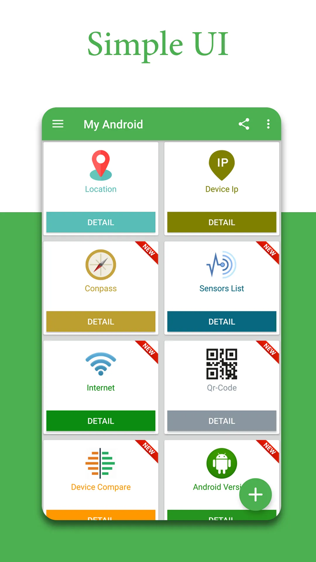 If you buy new device you must istalled firstly this application in your friend phone to testing for have information about your dream android device. My Android application will help you know the following: 1- Applications: you will see the list of applications installed on the device and can search, sort, uninstall and run apps. 2- Memory: memory information of the device and the SD card. Free memory available and used memory. 3- Camera Information: Info about front and rear cameras. 4- Internet connection: We give information about Internet connection in your device: 2G, 3G, 4G or WiFi....