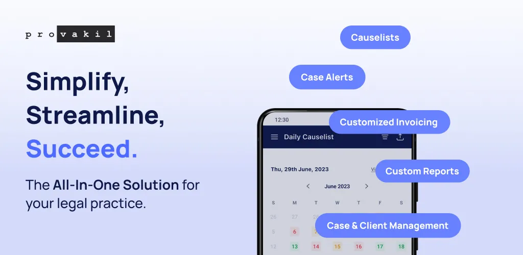 With Provakil’s AI-driven legal practice management software, advocates get a range of features to seamlessly manage their law practice and take their business to unprecedented heights. Sign up for a free trial today and upgrade your legal service with Provakil - India's most trusted legal tech software. Our 360° cloud-based legal practice management suite helps lawyers easily manage various aspects of legal operations online. It encompasses comprehensive features like- • Litigation Management / Case Management • Project Management (Billable & non-billable projects)...