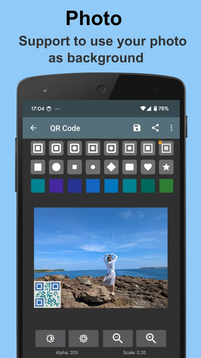 QR Code Generator is a simple and convenient tool that help you create QR Code image displayed on the screen. Several content types are supported, include Text, Url, Email, Phone number, Contact, Geolocation and SMS. Usage: a. Choose the type b. Input the content c. Select the style, or choose other Pictures as the background...