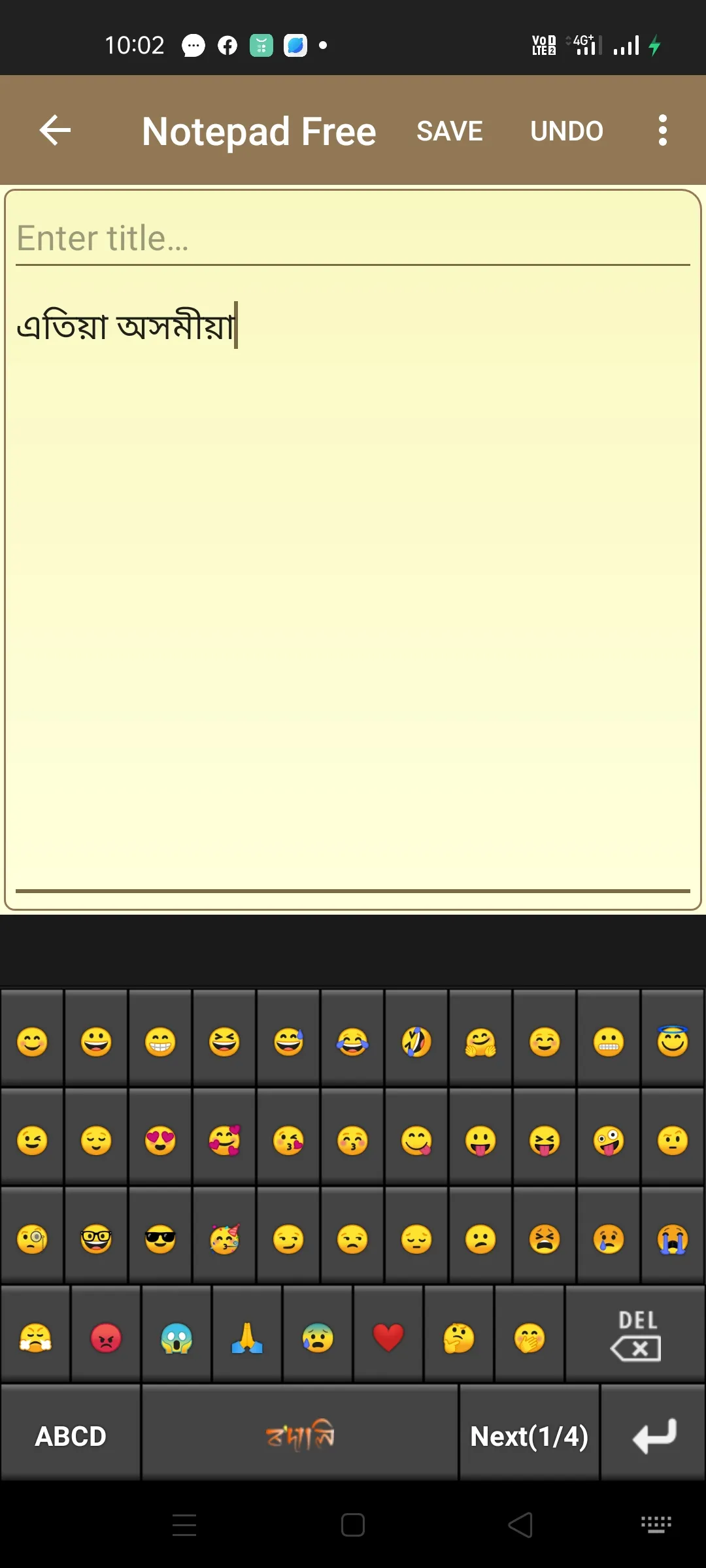 Rodali Assamese Keyboard is an application through which you can easily write messages, update on social networking sites or compose emails in ASSAMESE on your Android phone or tablet. It mainly contains two typing methods(layouts).One is "Simple", where the Assamese letters are displayed on the keyboard and you have to just tap the letters to write. There will be automatic suggestion for valid conjunct characters (Juktaxars) with each letter. Another method is "Phonetic" where you can type Assamese words using English characters and it transliterates the text into Assamese on the fly. In each method, you can type in English by switching the "As" mode to "En" . In phonetic layout, the App also provides auto-suggestion for some commonly misspelled Assamese words while typing. You can also add your own words for auto-suggestion or delete any unwanted word from the suggestion list. You can also take backup of the words that you added to the dictionary and retrieve them at the time of retrieving the app. KEY FEATURES: ★ Totally FREE ★ Directly write Assamese on any editor or application without the hassle of copying and pasting text. ★ Contains three layouts- Simple, Phonetic and Old....